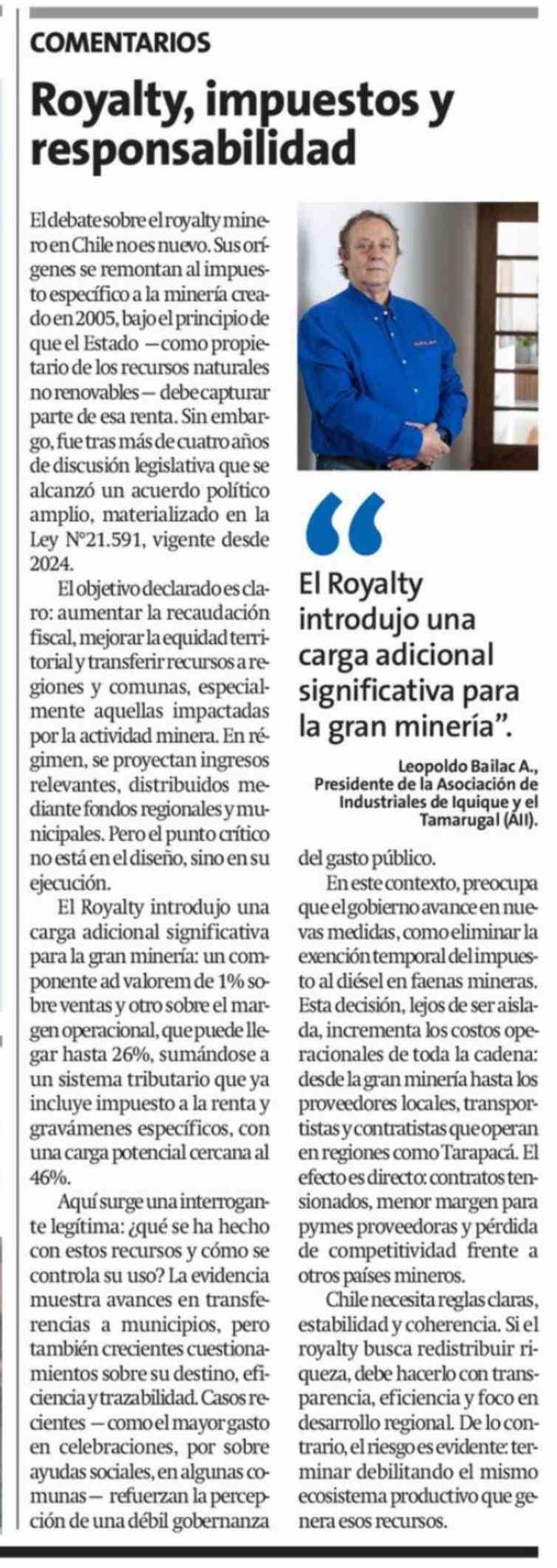 Título: Columnas de Opinión: Royalty, impuestos y responsabilidad