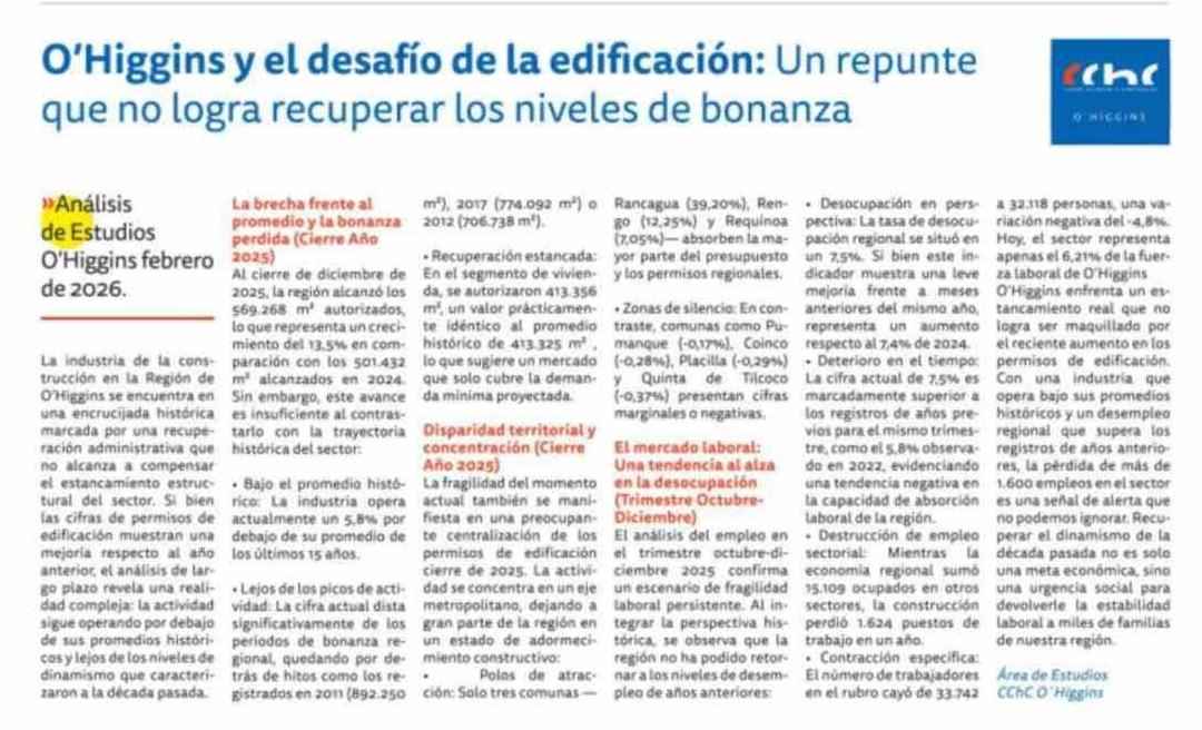 O'Higgins y el desafío de la edificación: Un repunte que no logra recuperar los niveles de bonanza