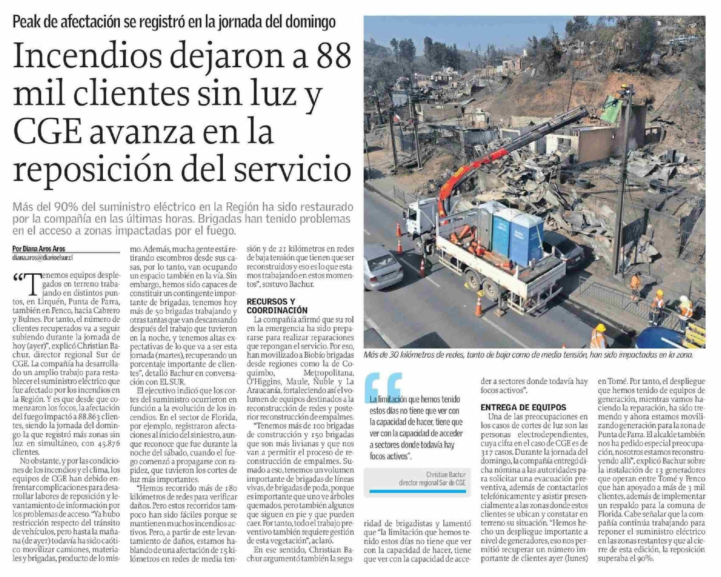 Incendios dejaron a 88 mil clientes sin luz y CGE avanza en la reposición del servicio
