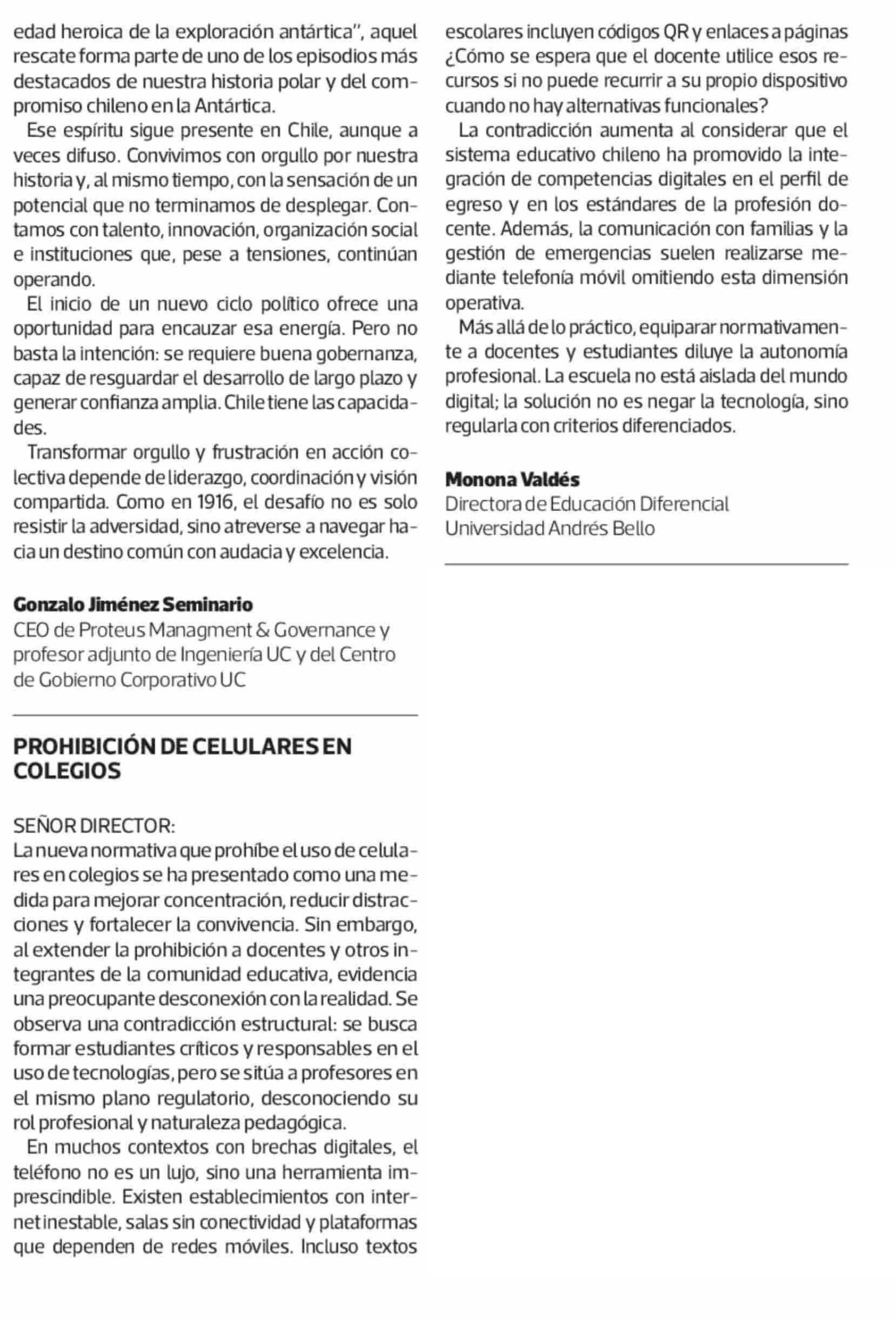 Título: CARTAS: PROHIBICIÓN DE CELULARES EN COLEGIOS
