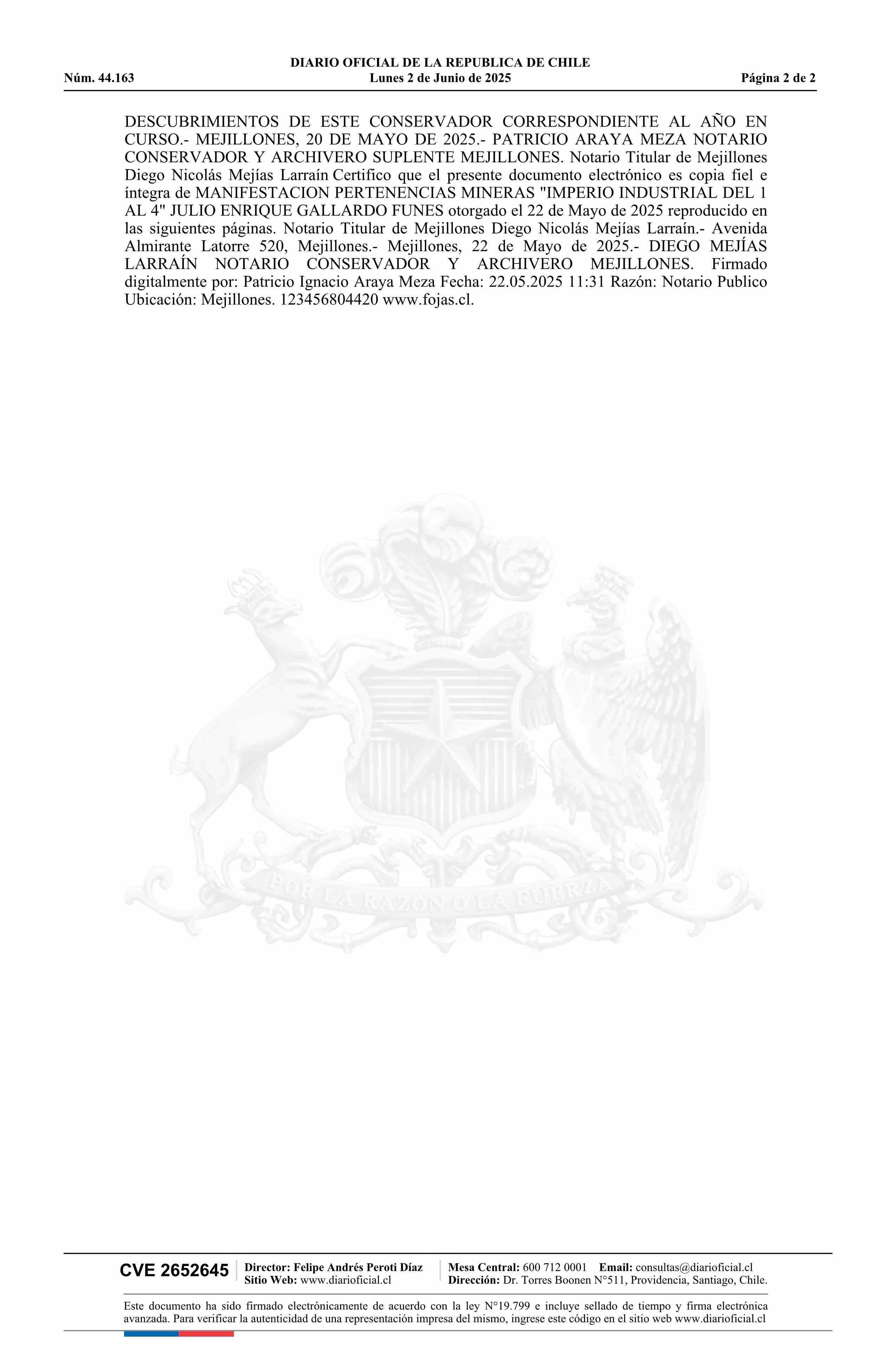 DIARIO OFICIAL CHILE - BOLETÍN OFICIAL DE MINERÍA (DIARIO OFICIAL CHILE – BOM – MANIFESTACIONES MIN)