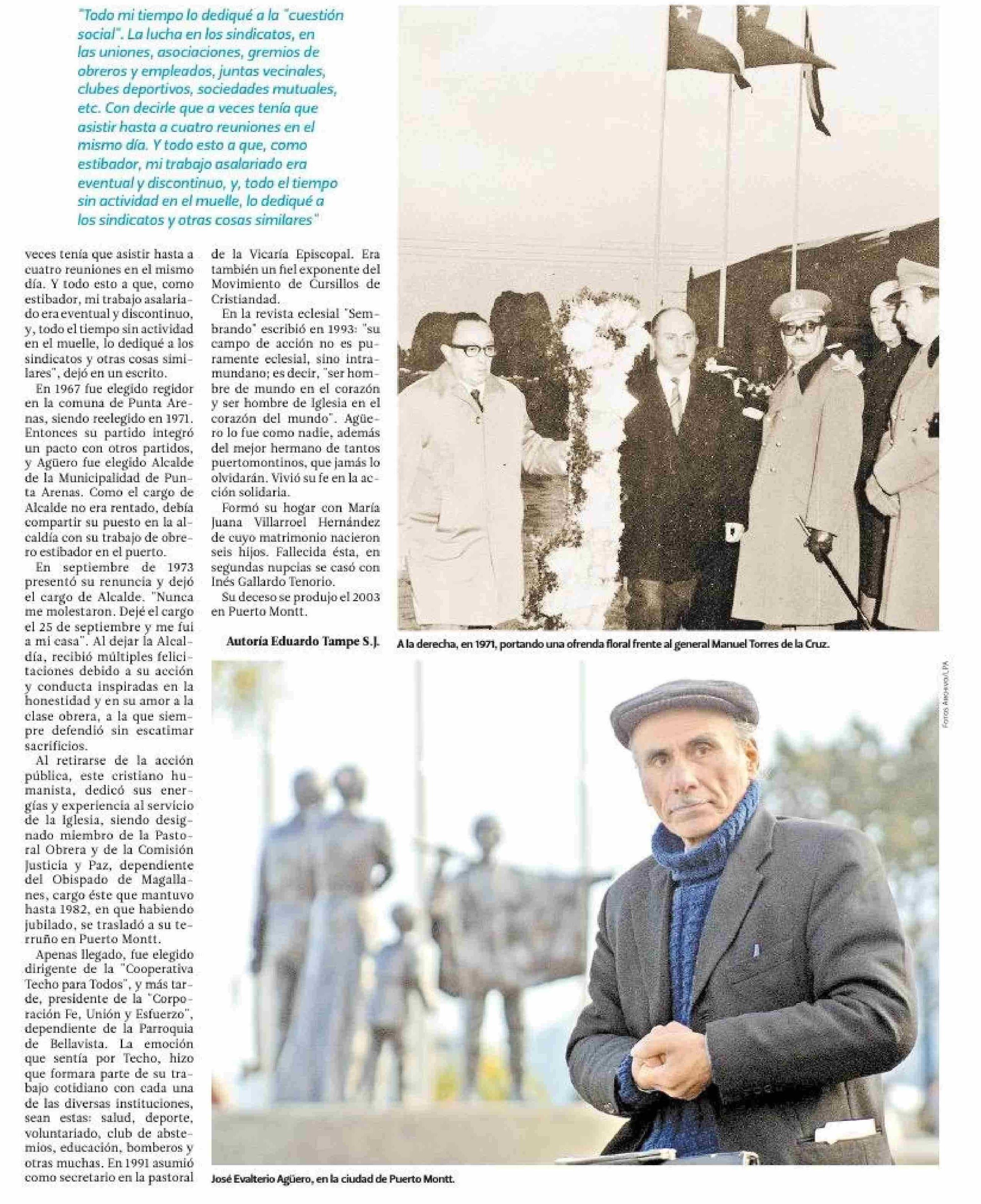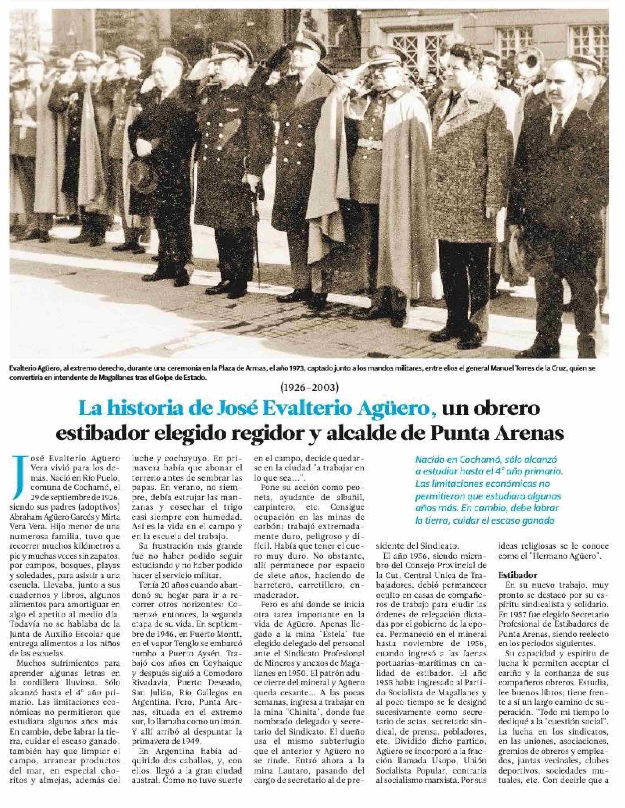 La historia de José Evalterio Agüero, un obrero estibador elegido regidor alcalde de Punta Arenas