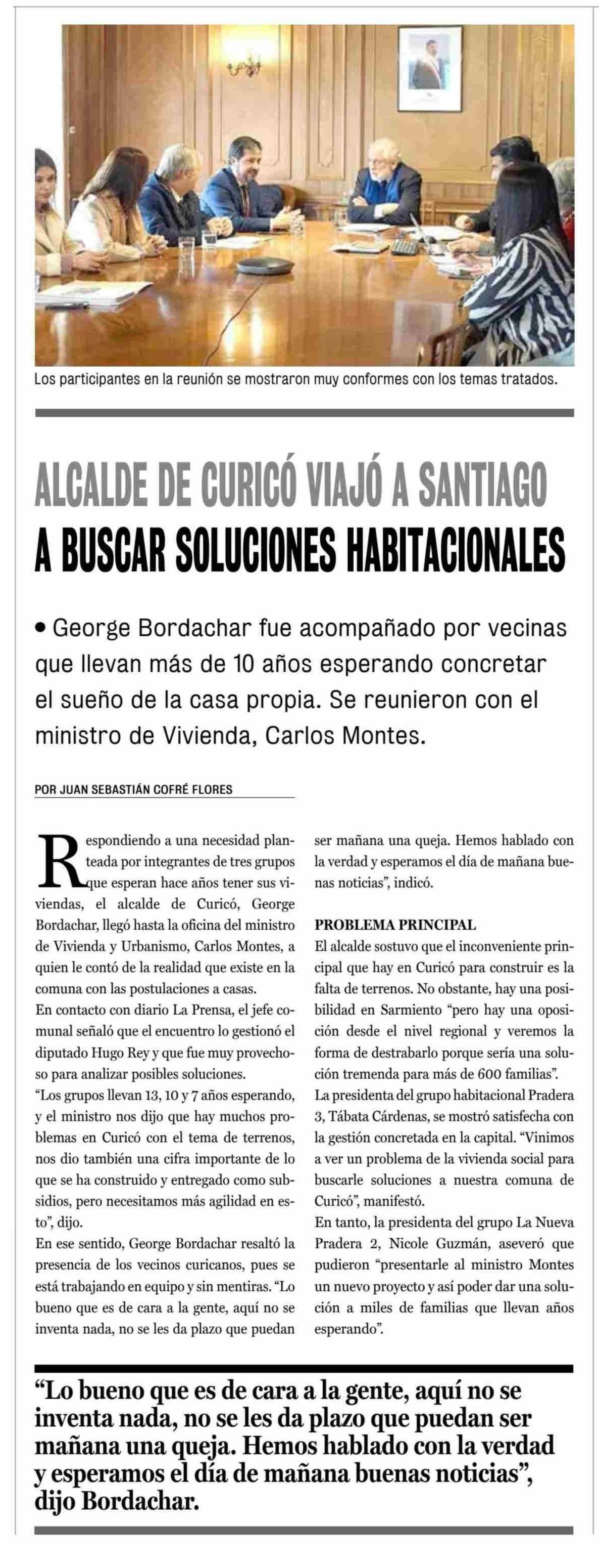 ALCALDE DE CURICÓ VIAJÓ A SANTIAGO A BUSCAR SOLUCIONES HABITACIONALES