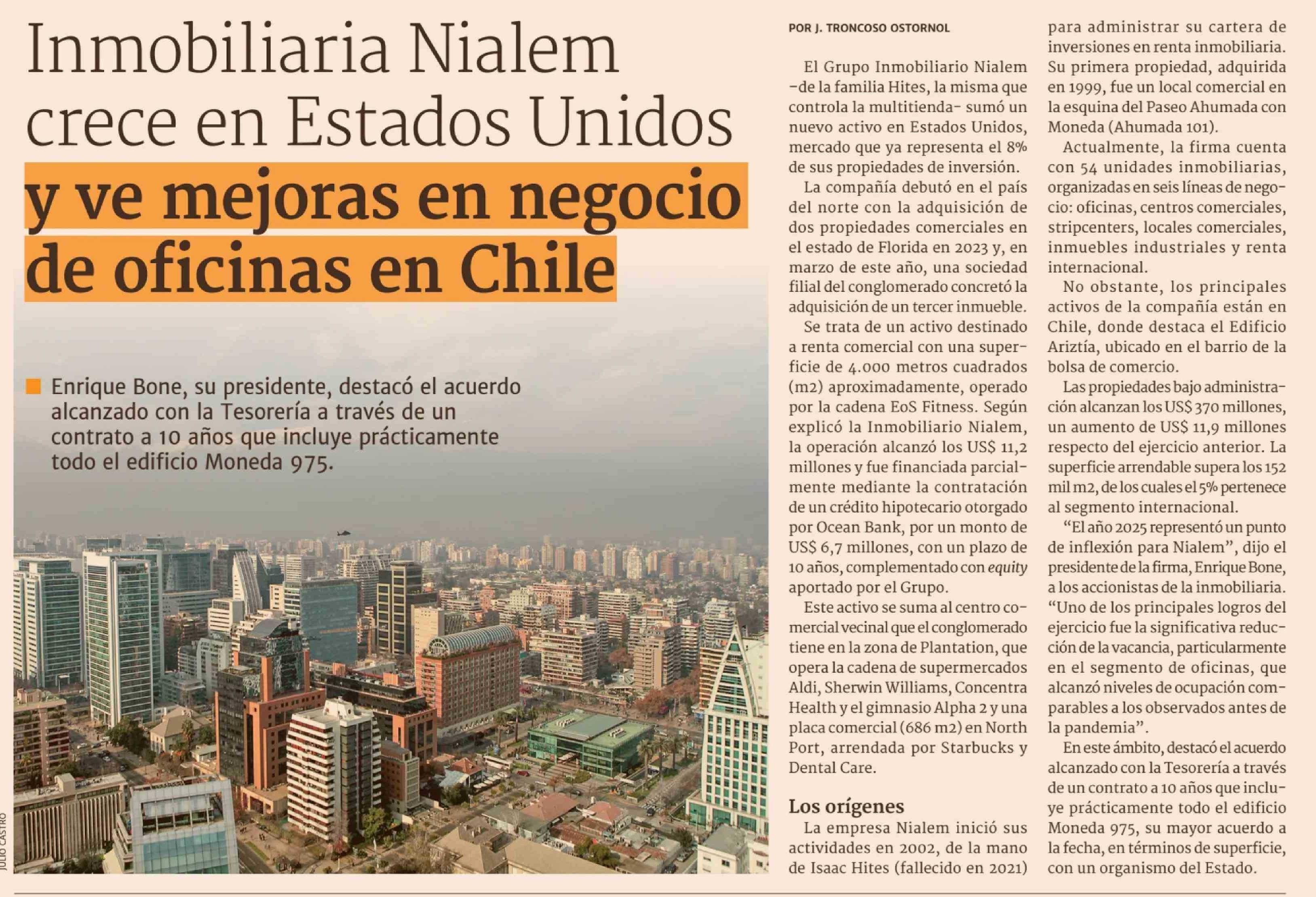 Inmobiliaria Nialem crece en Estados Unidos y ve mejoras en negocio de oficinas en Chile
