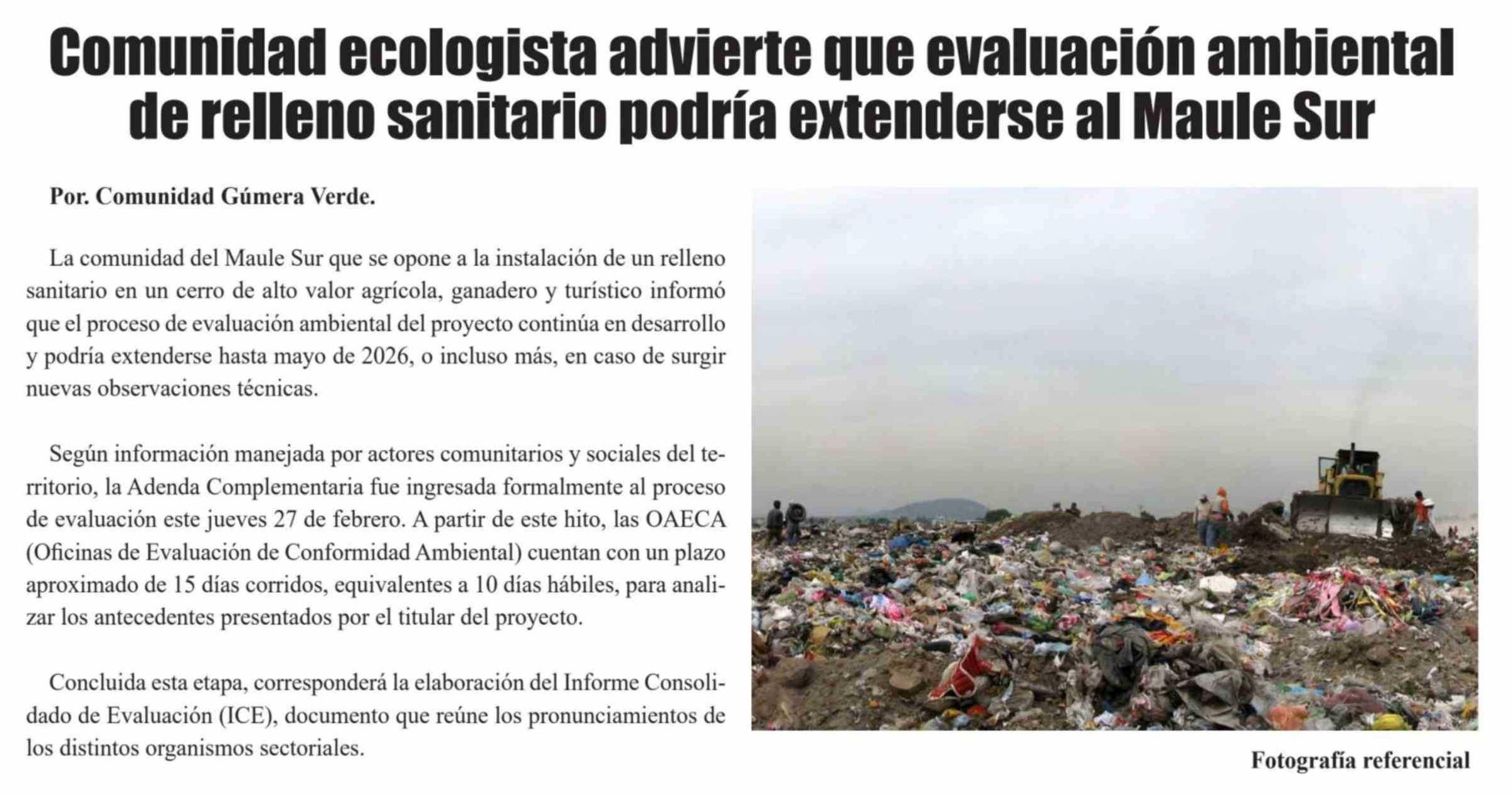 Comunidad ecologista advierte que evaluación ambiental de relleno sanitario podría extenderse al Maule Sur