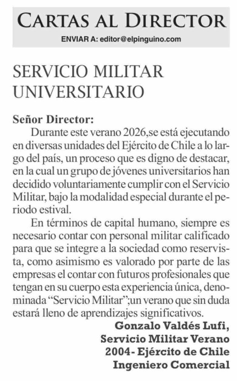 Cartas: SERVICIO MILITAR UNIVERSITARIO