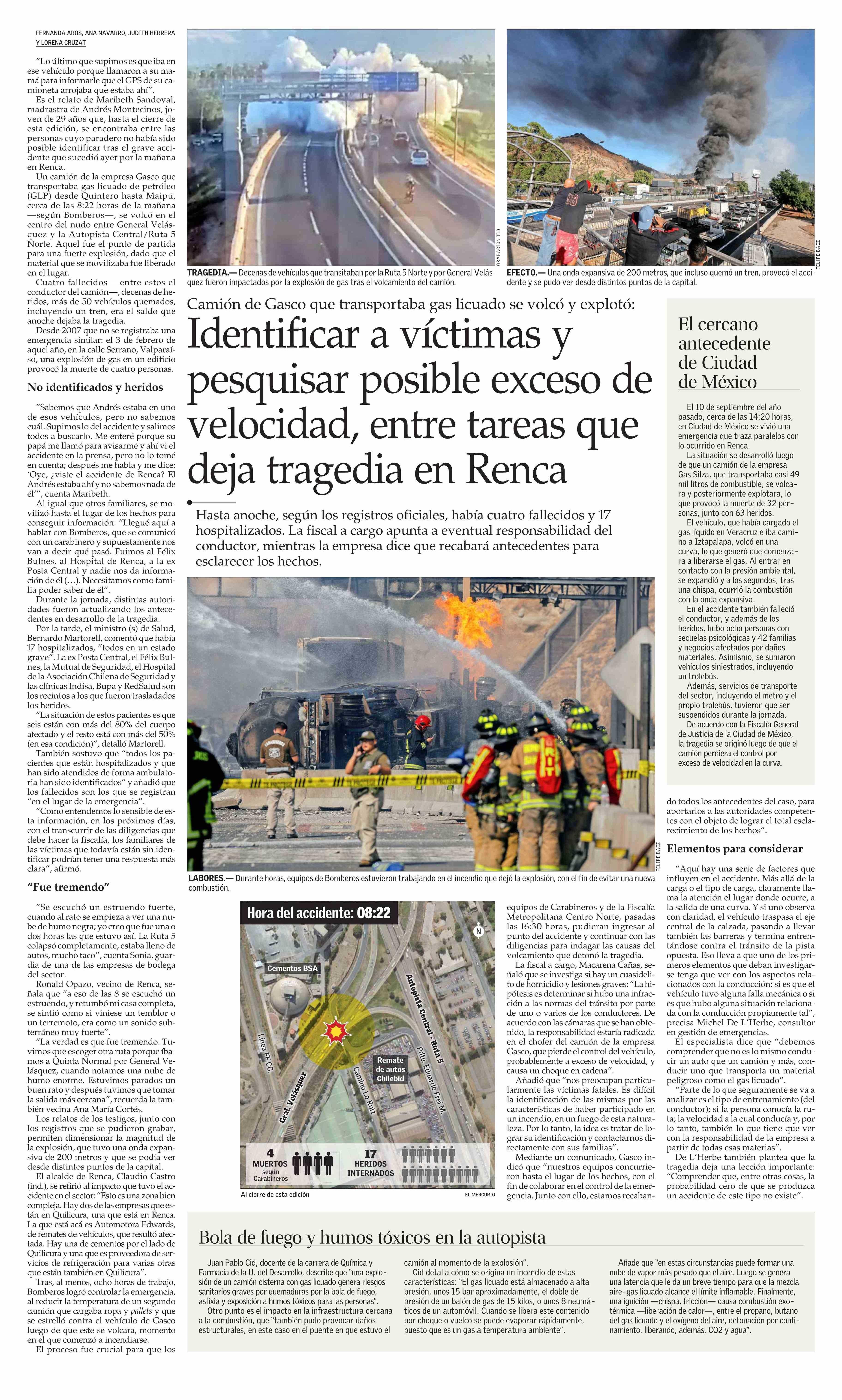 Identificar a víctimas y pesquisar posible exceso de velocidad, entre tareas que deja tragedia en Renca