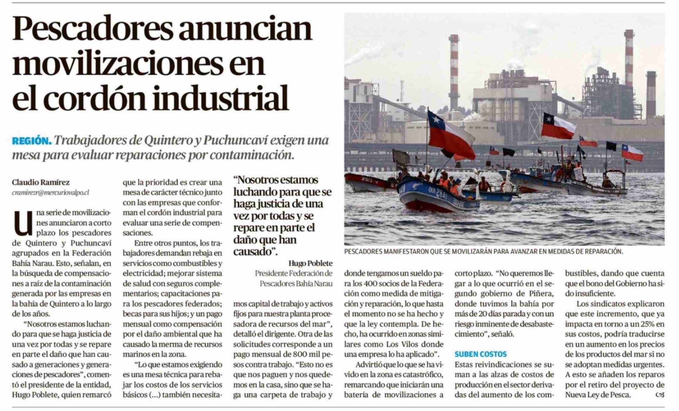 Pescadores anuncian movilizaciones en el cordón industrial