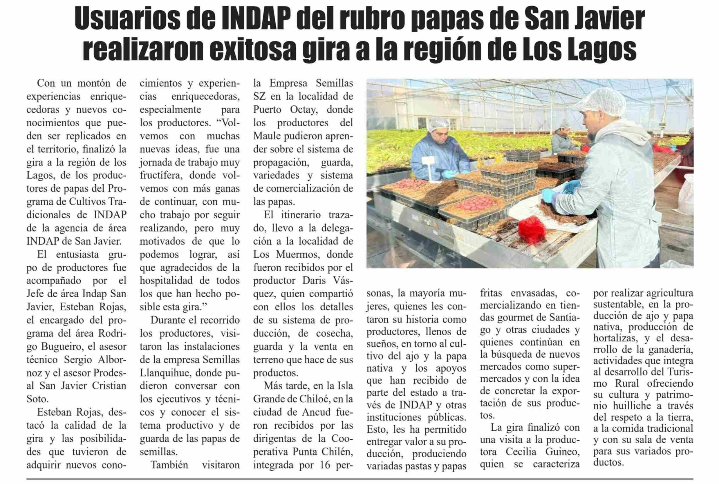 Usuarios de INDAP del rubro papas de San Javier realizaron exitosa gira a la región de Los Lagos