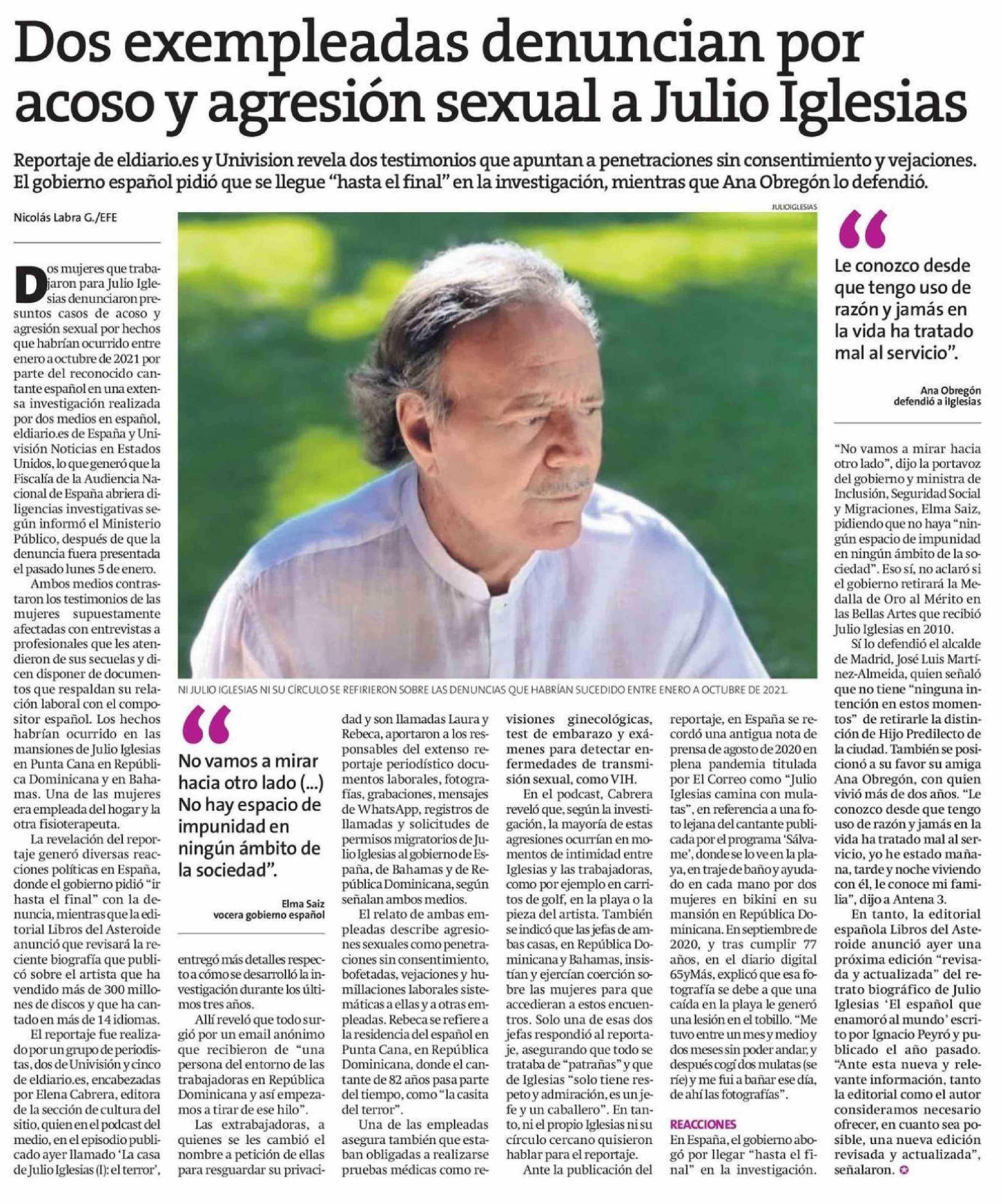 Título: Dos exempleadas denuncian por acoso y agresión sexual a Julio Iglesias