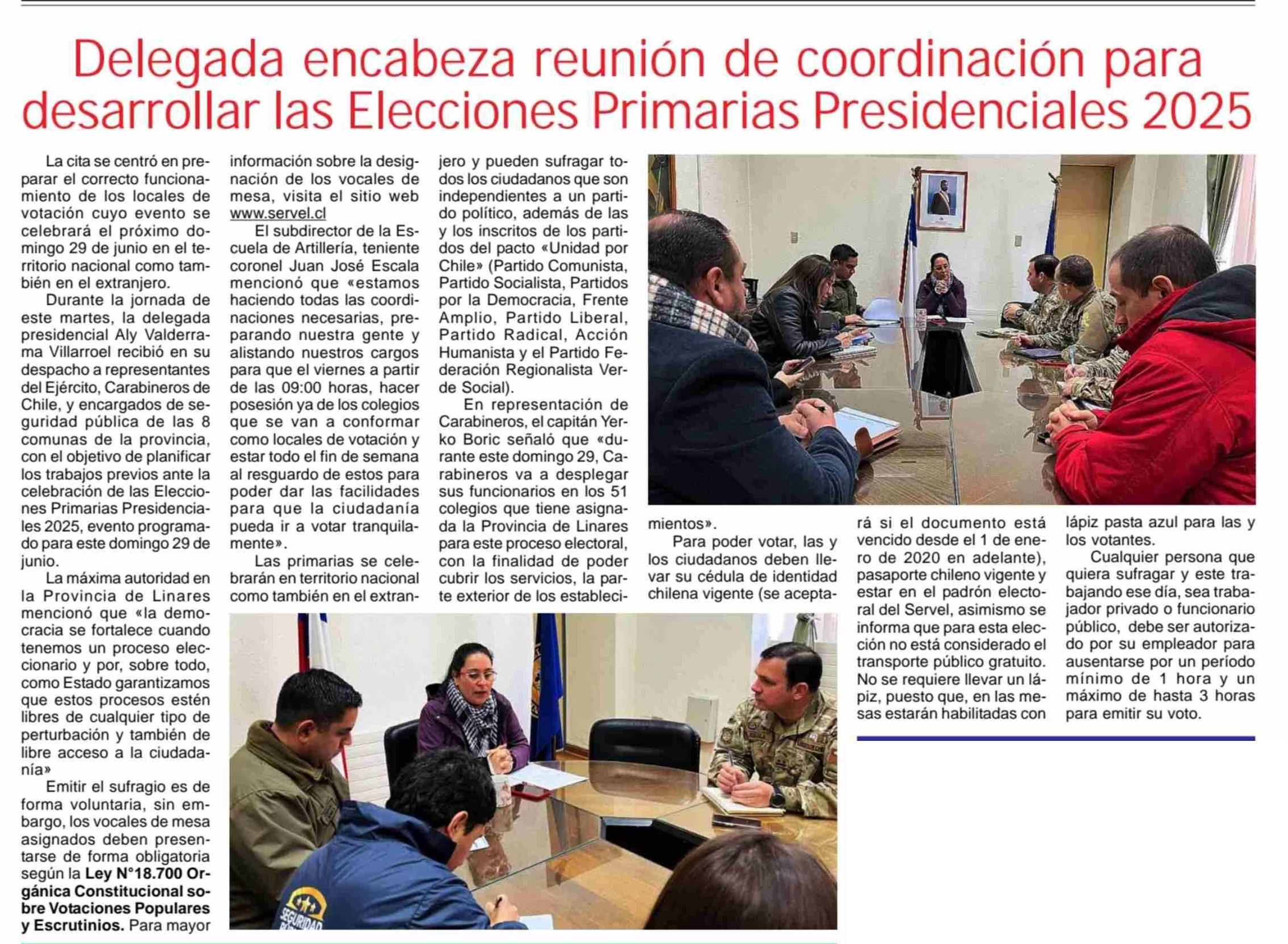Delegada encabeza reunión de coordinación para desarrollar las Elecciones Primarias Presidenciales 2025