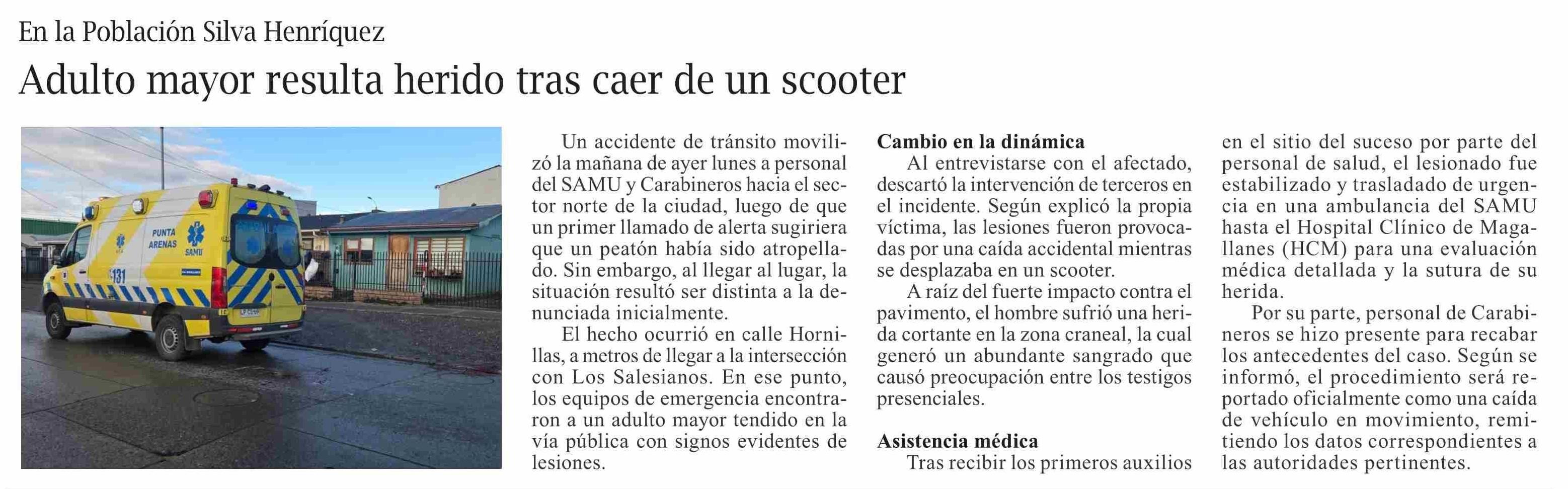 Título: Adulto mayor resulta herido tras caer de un scooter