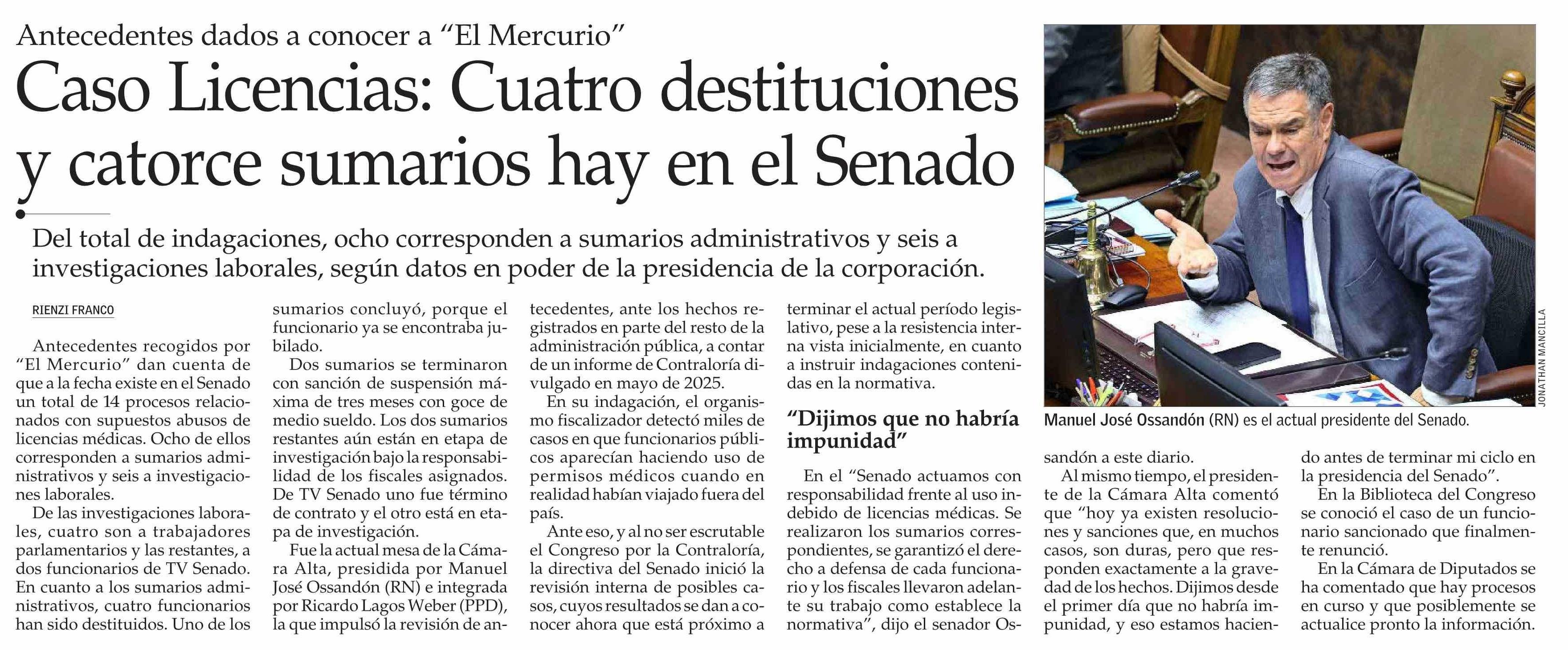 Título: Caso Licencias: Cuatro destituciones y catorce sumarios hay en el Senado
