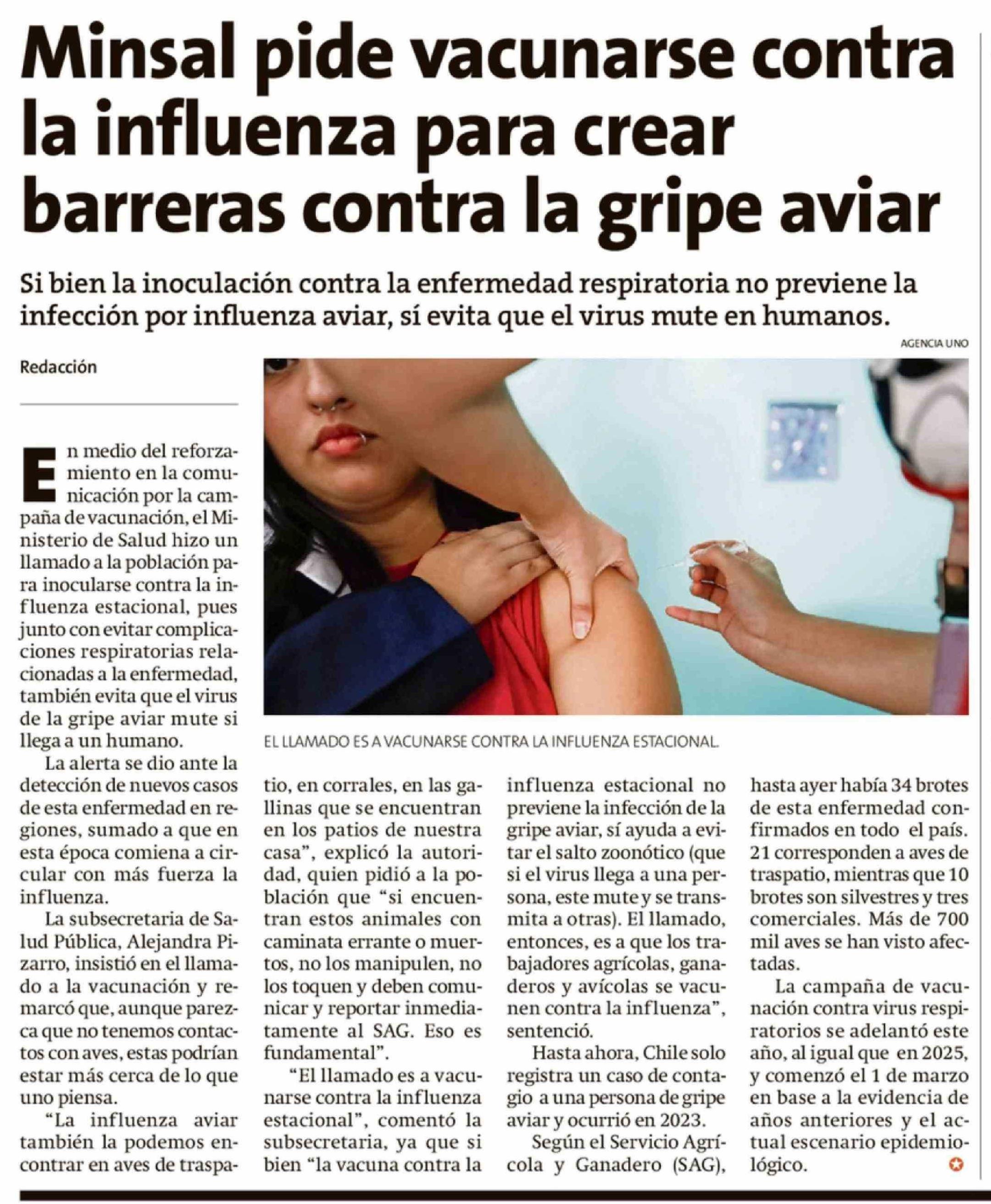 Minsal pide vacunarse contra la influenza para crear barreras contra la gripe aviar