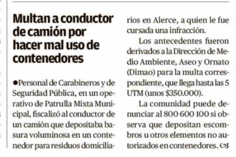 Multan a conductor de camión por hacer mal uso de contenedores
