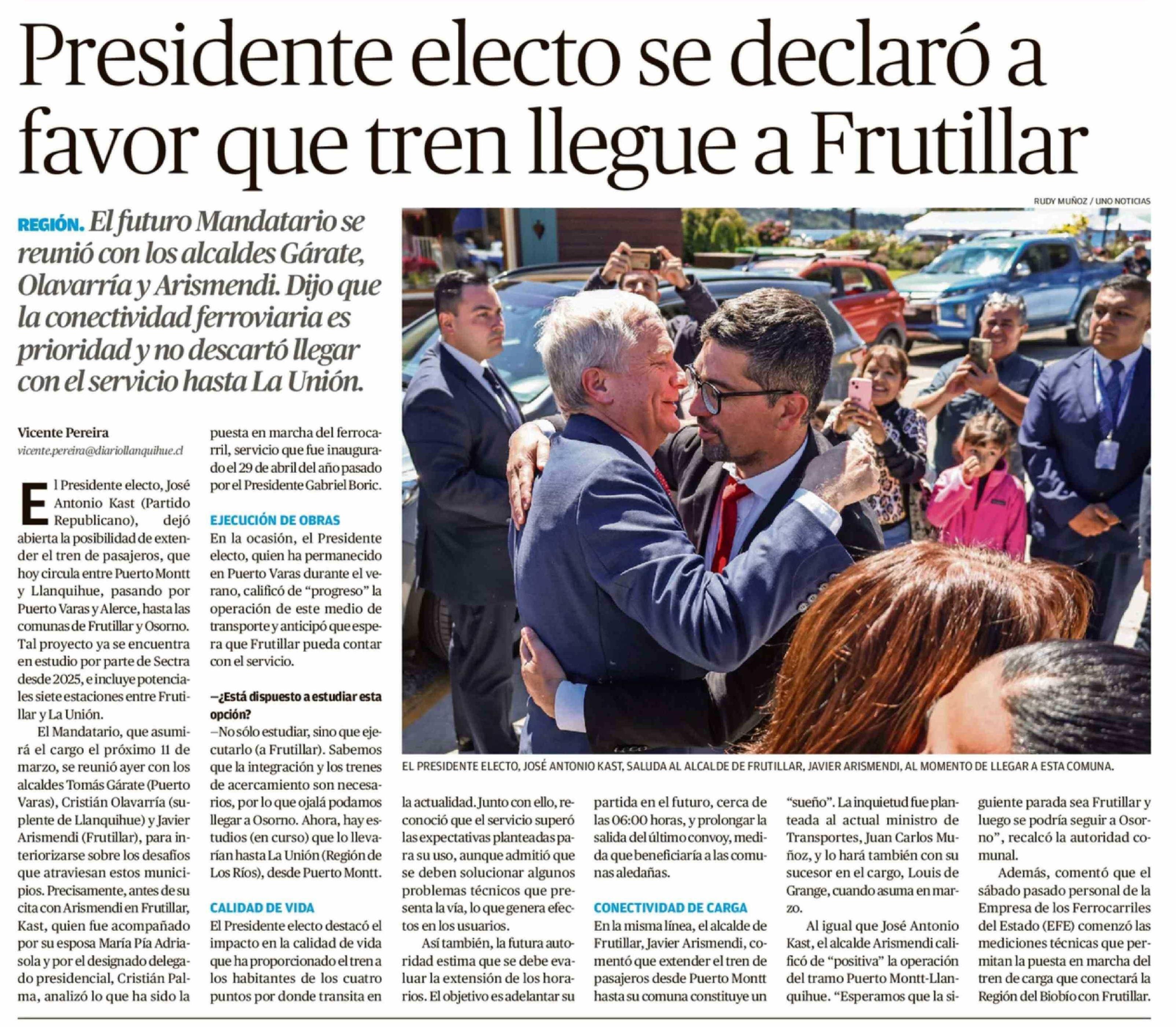 Presidente electo se declaró a favor que tren llegue a Frutillar