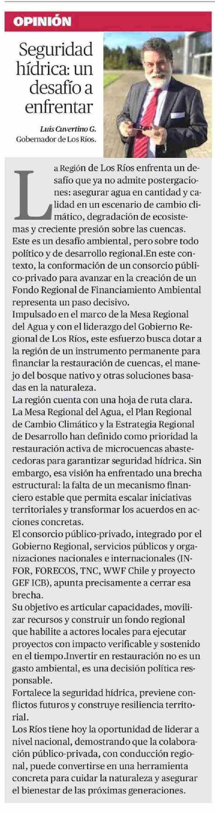 Columnas de Opinión: Seguridad hídrica: un desafío a enfrentar