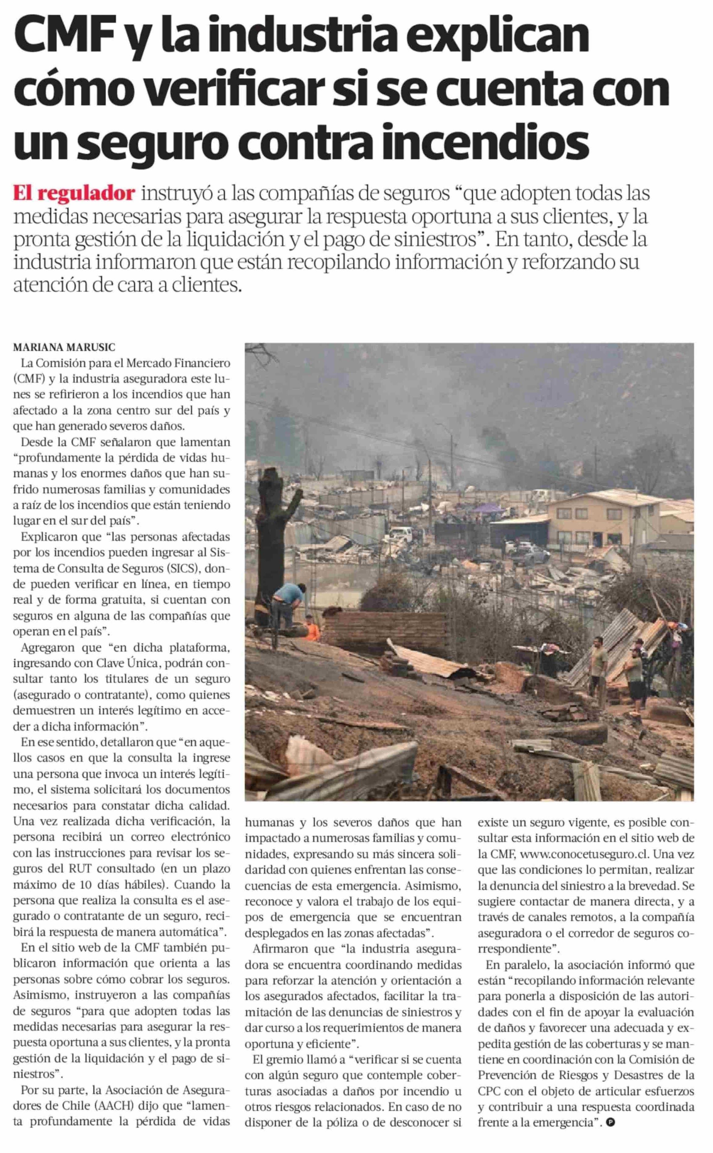 CMF y la industria explican cómo verificar si se cuenta con un seguro contra incendios