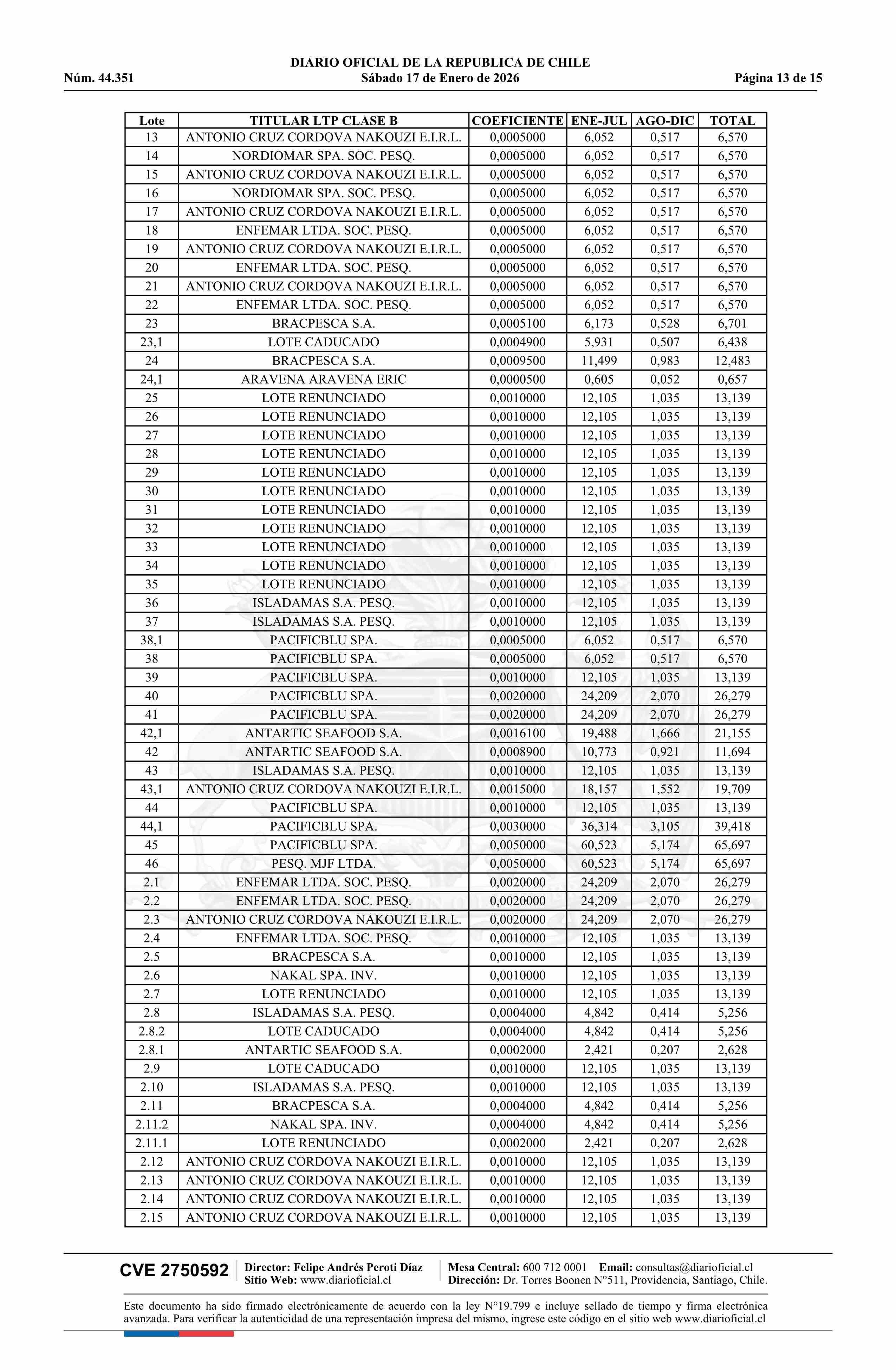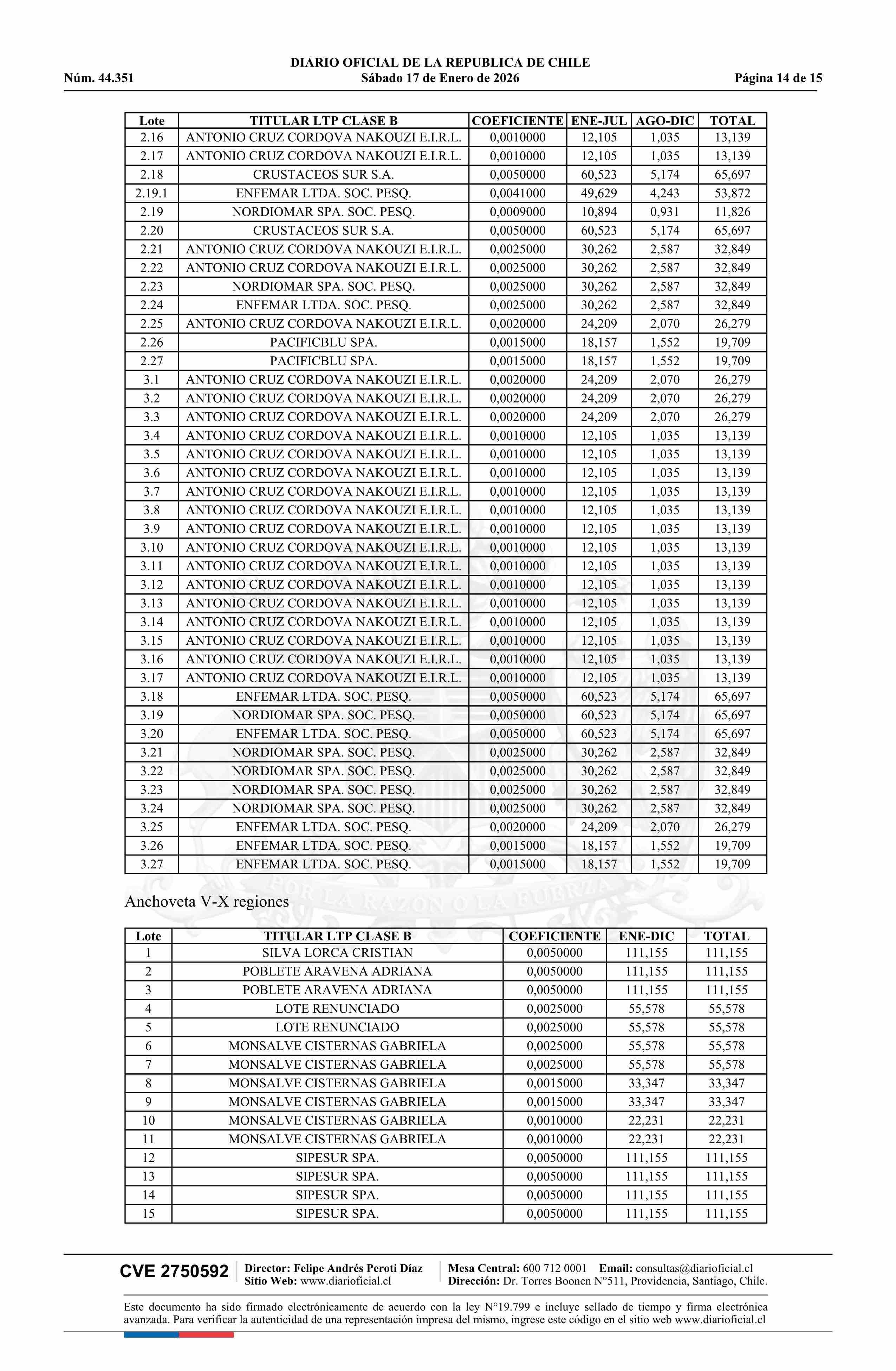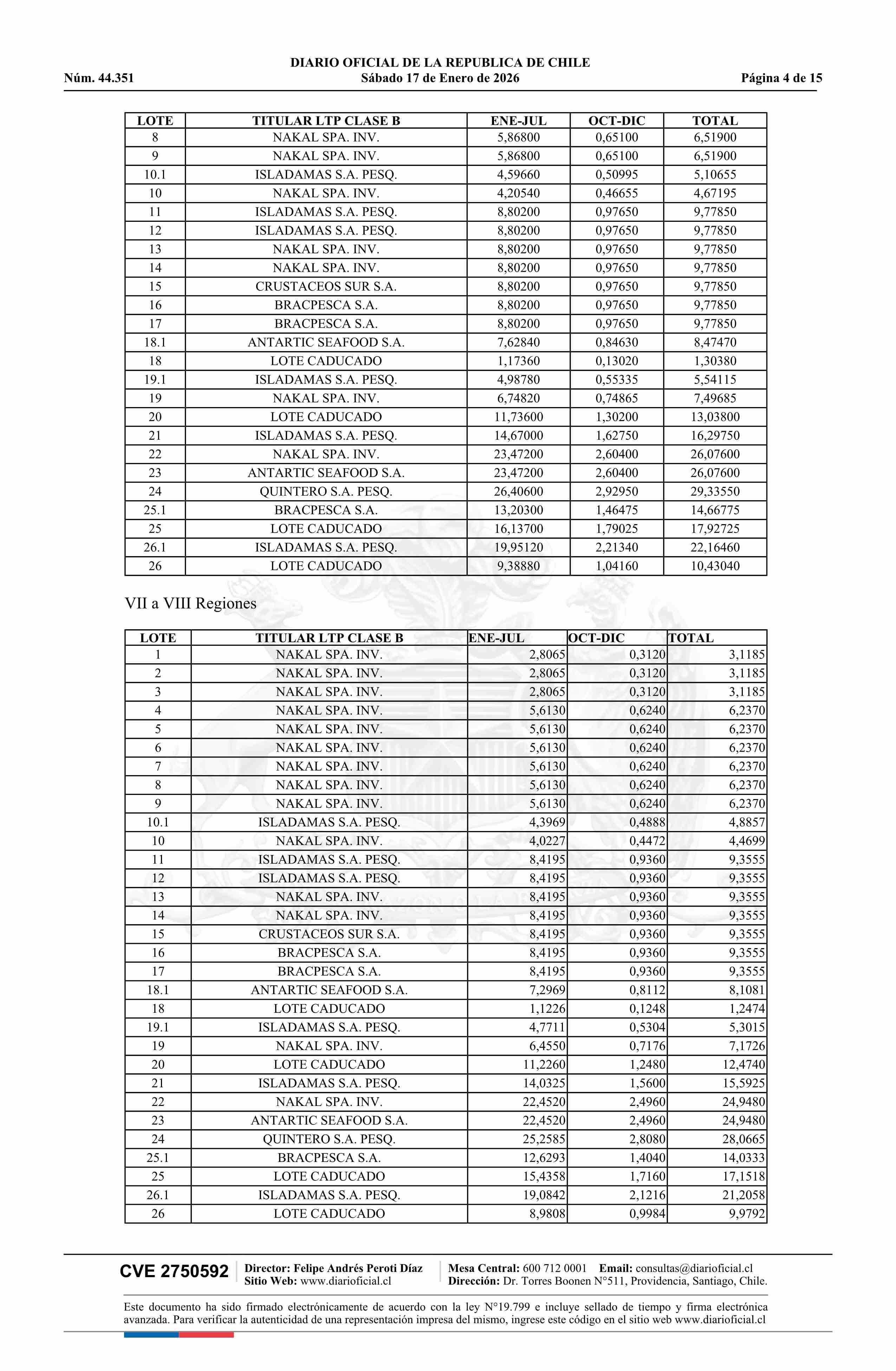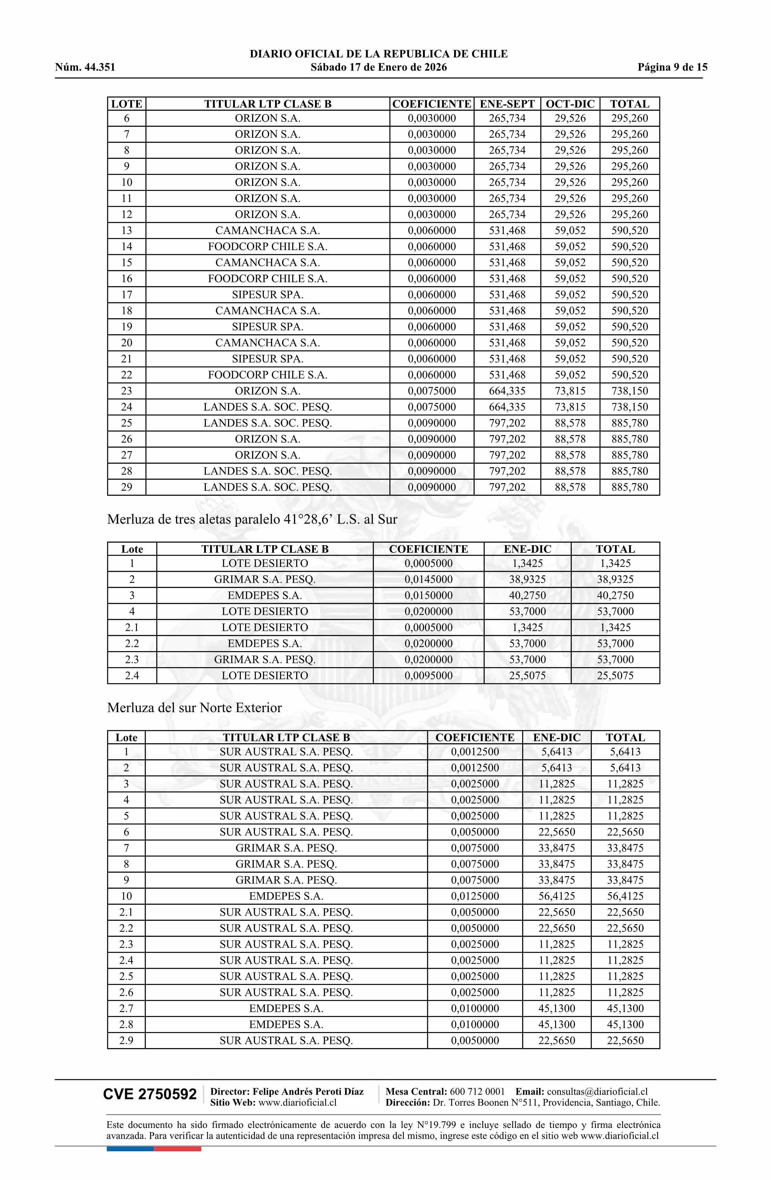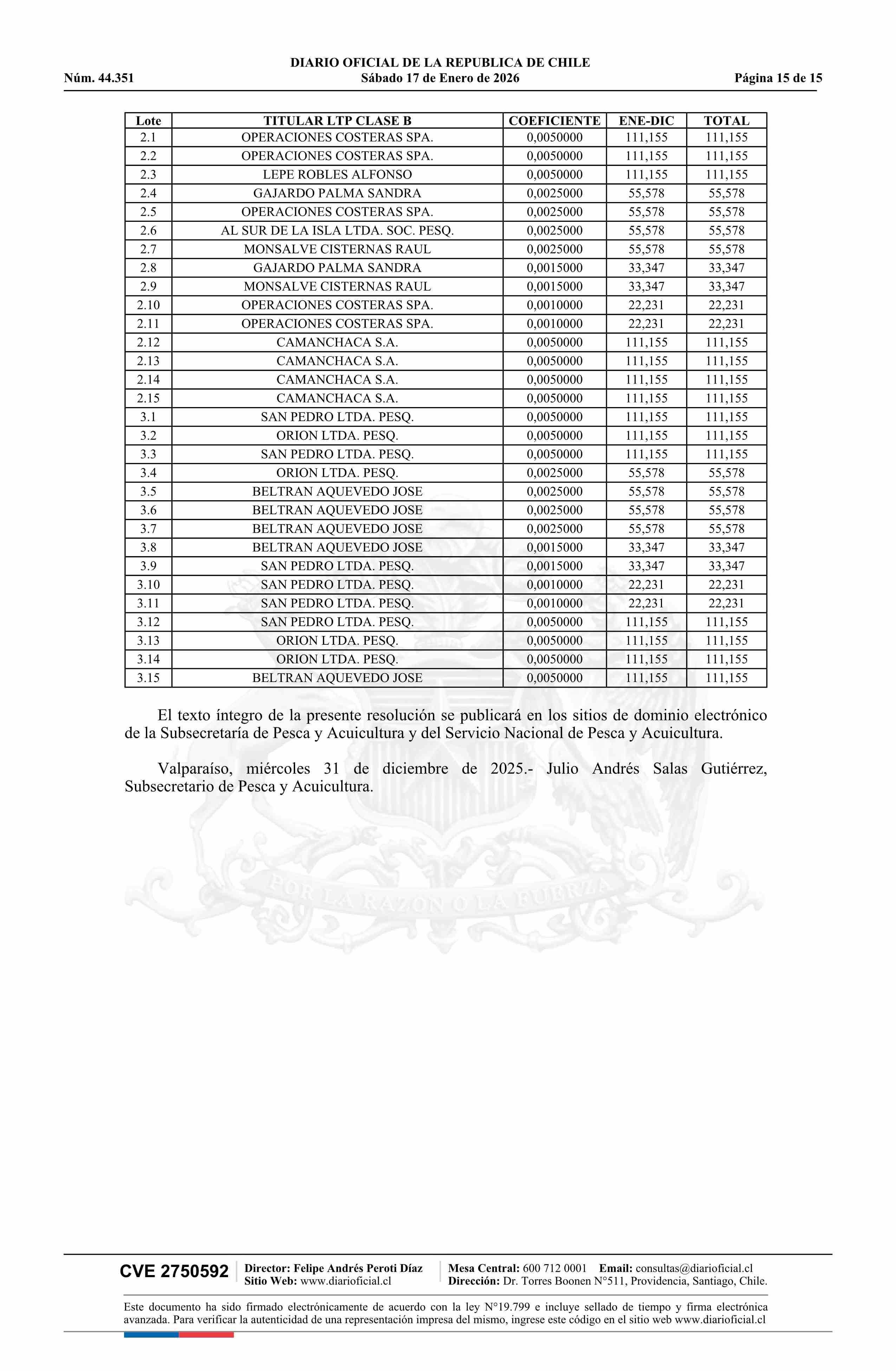 | Título: | Extracto de resolución exenta número 3.054, de 2025.- Establece toneladas para titulares de Licencias Transables de Pesca, Clase B, año 2026 |