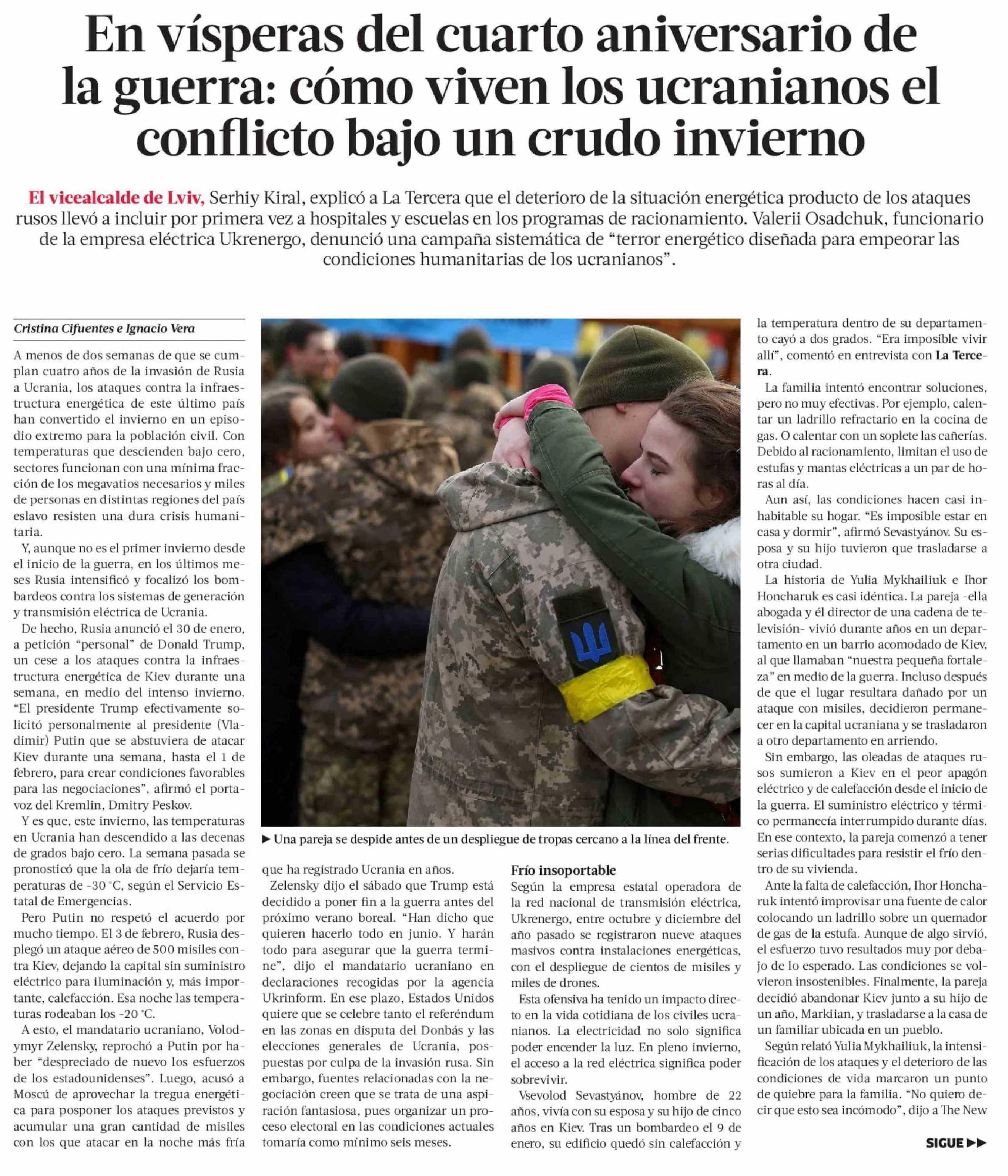 En vísperas del cuarto aniversario de la guerra: cómo viven los ucranianos el conflicto bajo un crudo invierno