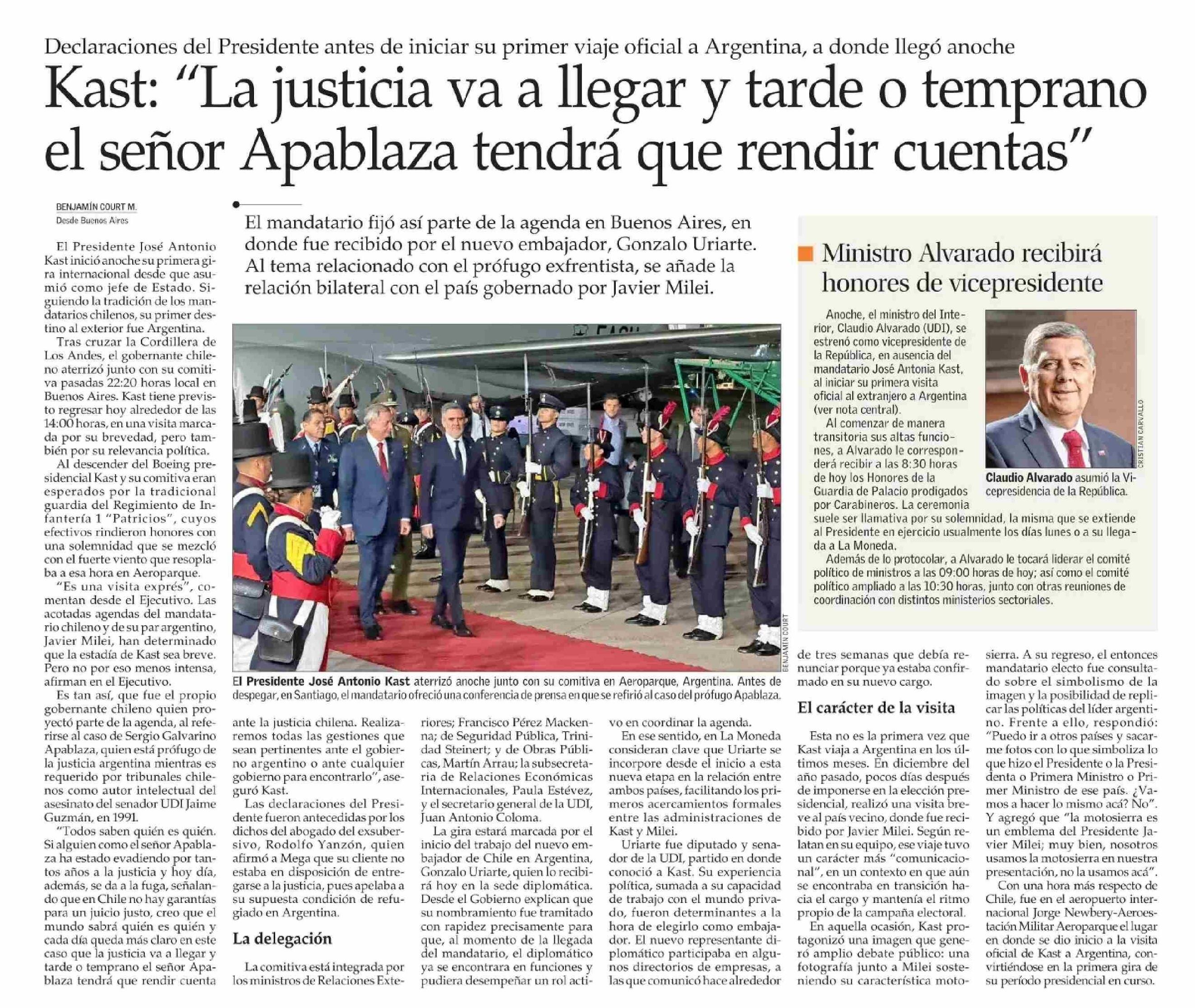 Kast: “La justicia vaa x llegar y y tarde o temprano el señor Apablaza tendrá que rendir cuentas”