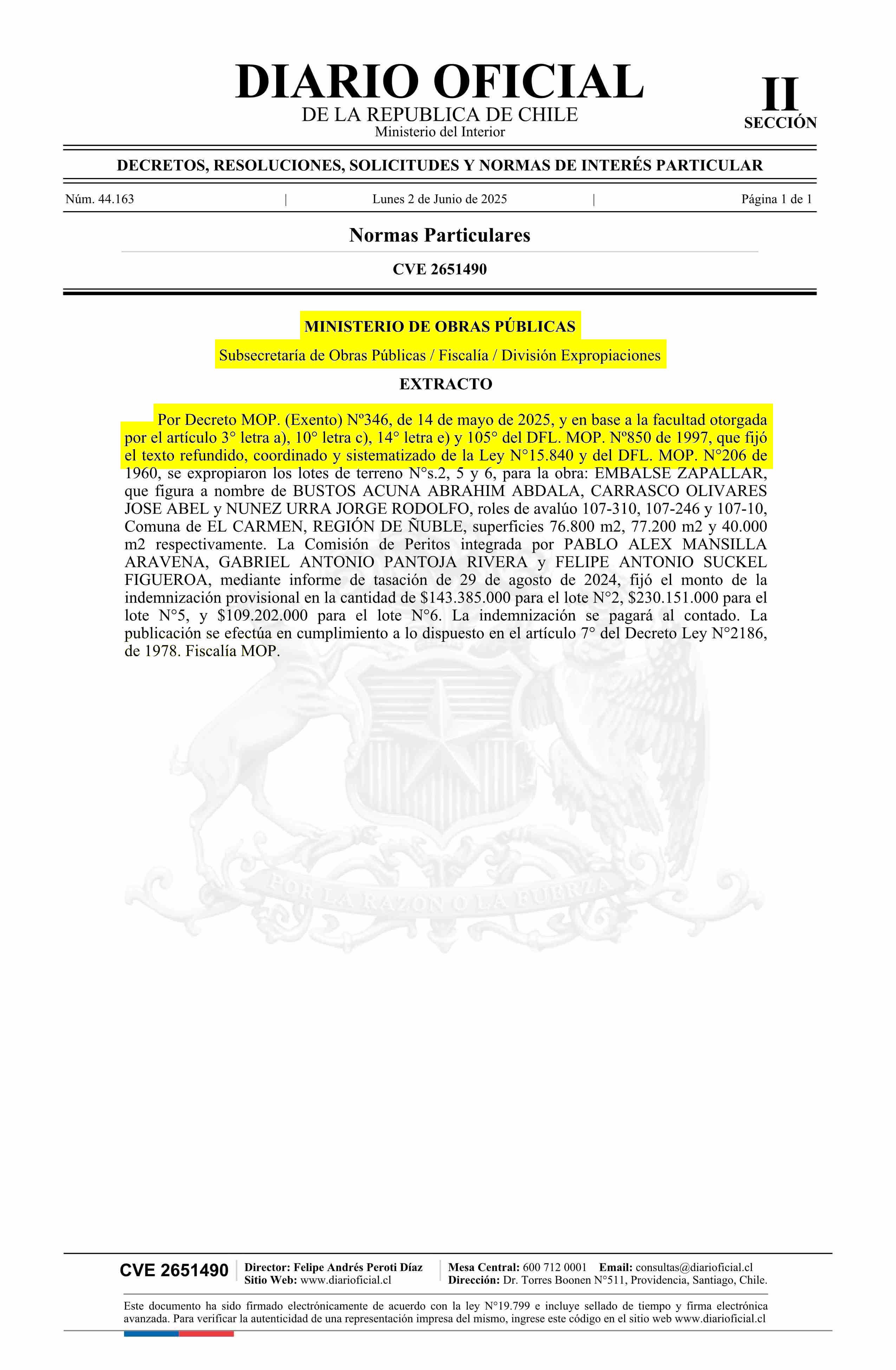 Diario Oficial Edición Electrónica (Diario Oficial de Chile - 2 Normas Particulares)
