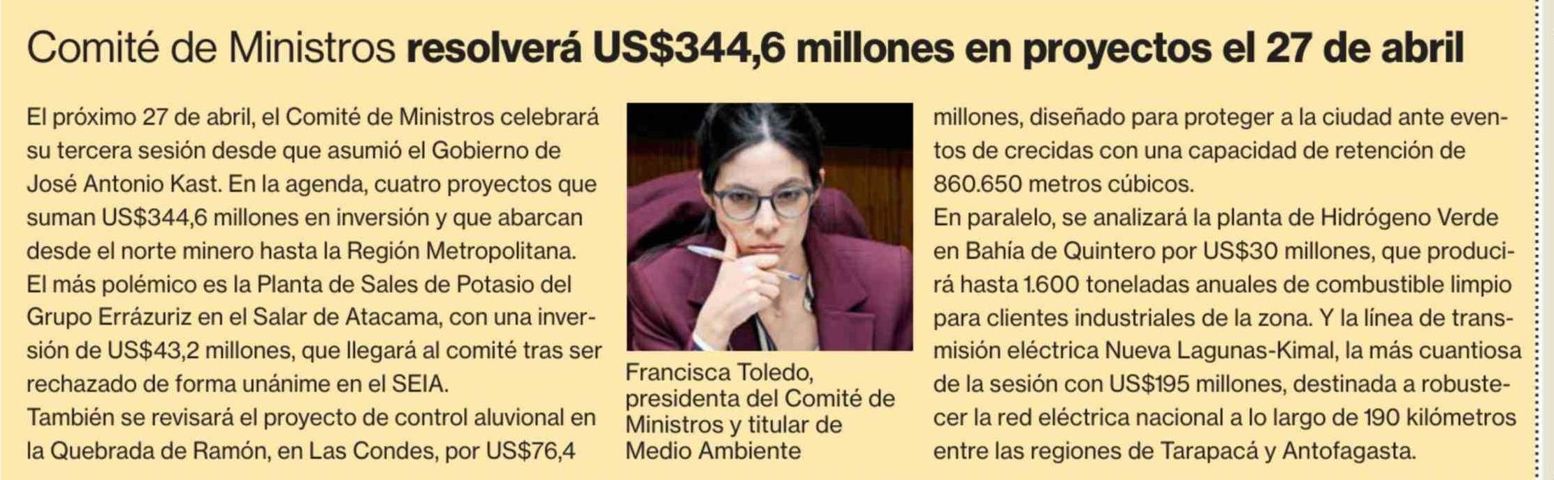 Comité de Ministros resolverá US$344,6 millones en proyectos el 27 de abril
