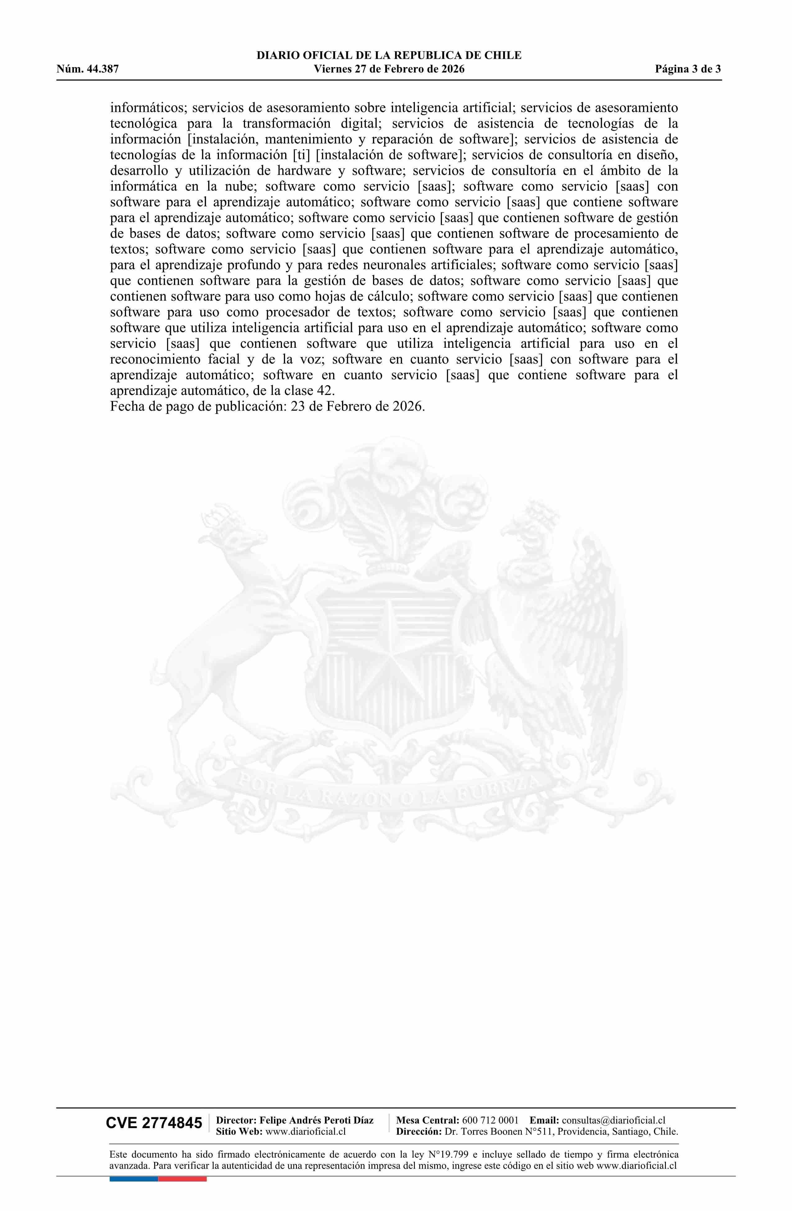 Diario Oficial Edición Electrónica (Diario Oficial de Chile - 6 Marcas Y Patentes)