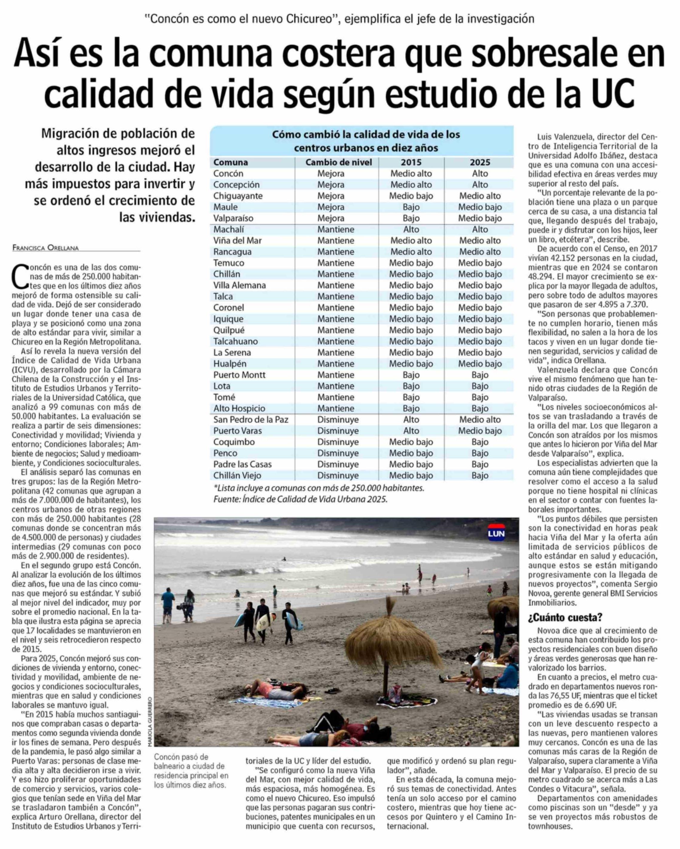 Así es la comuna costera que sobresale en calidad de vida según estudio de la UC