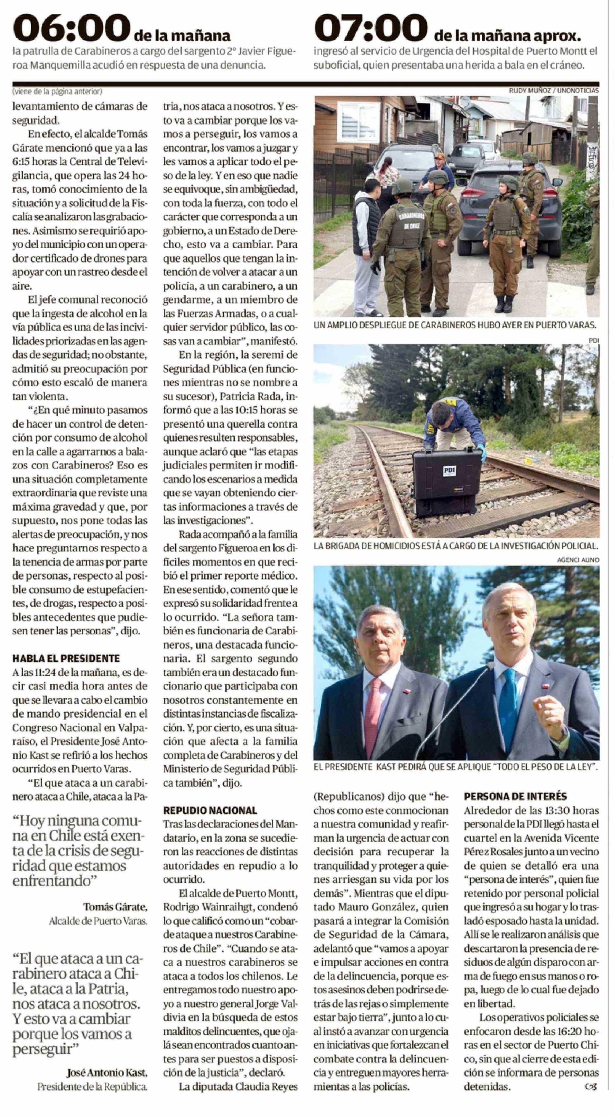 Baleo de suboficial en servicio de Puerto Varas remece al país