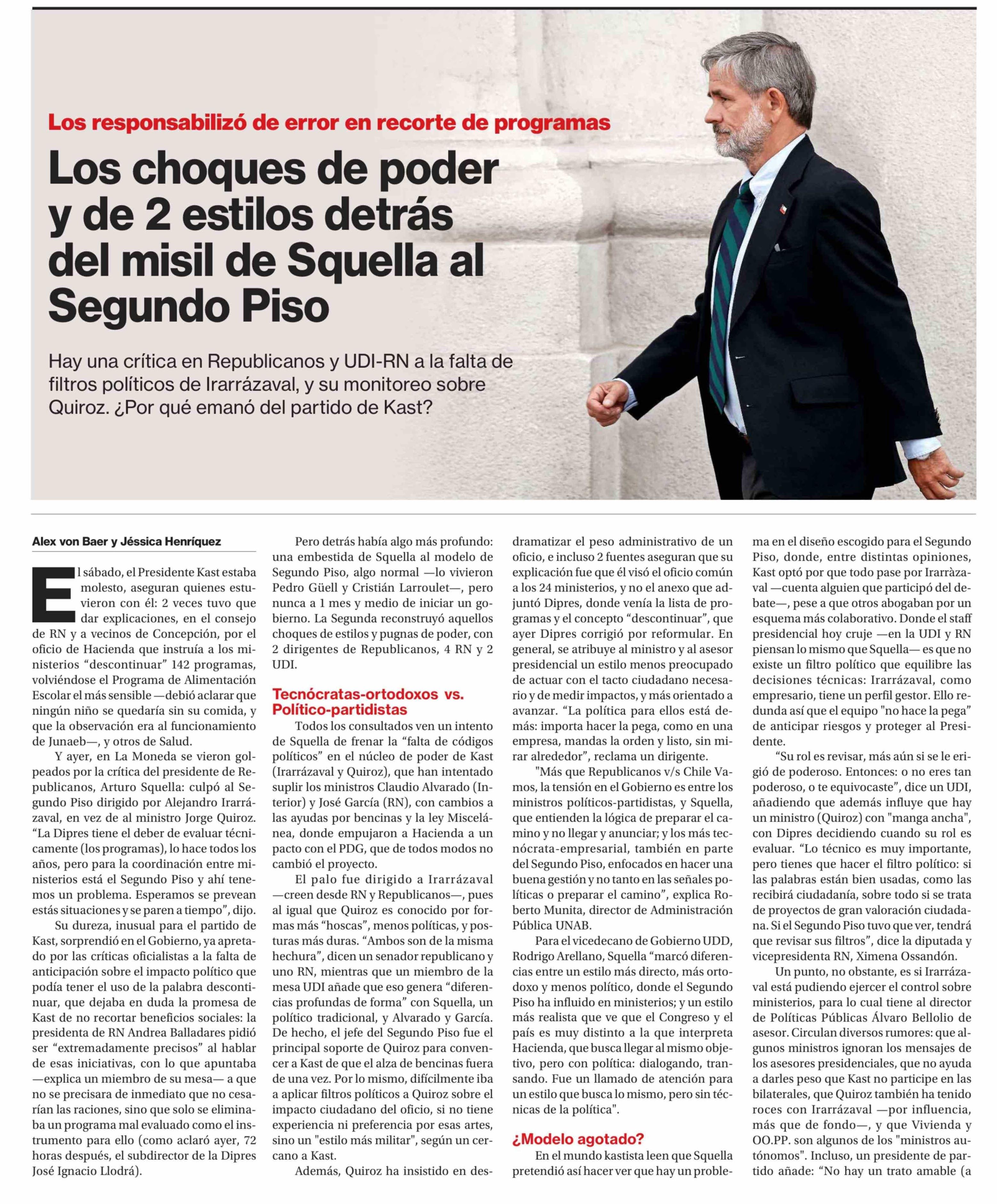 Los choques de poder y de 2 estilos detrás del misil de Squella al Segundo Piso