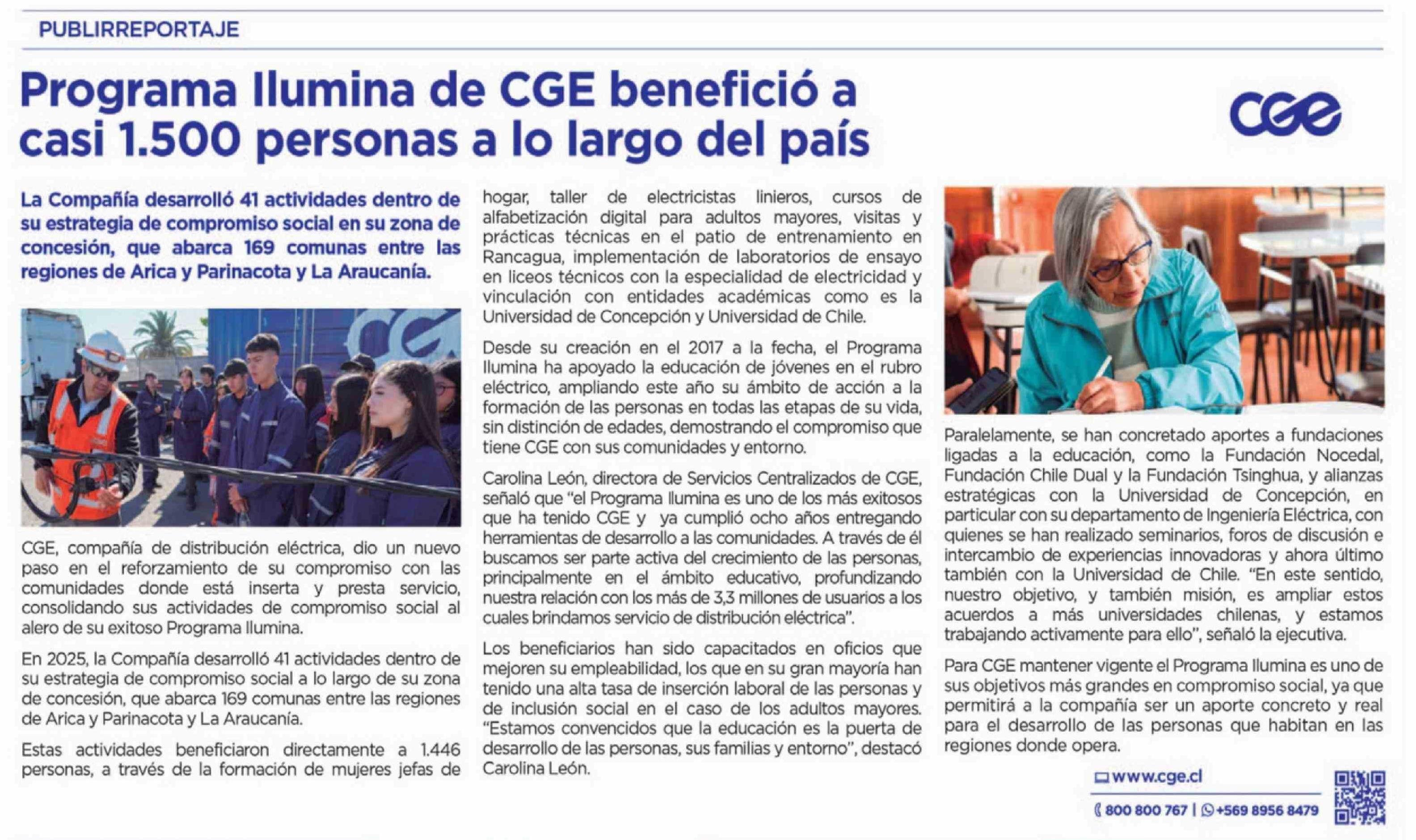 Programa Ilumina de CGE benefició a casi 1.500 personas a lo largo del país