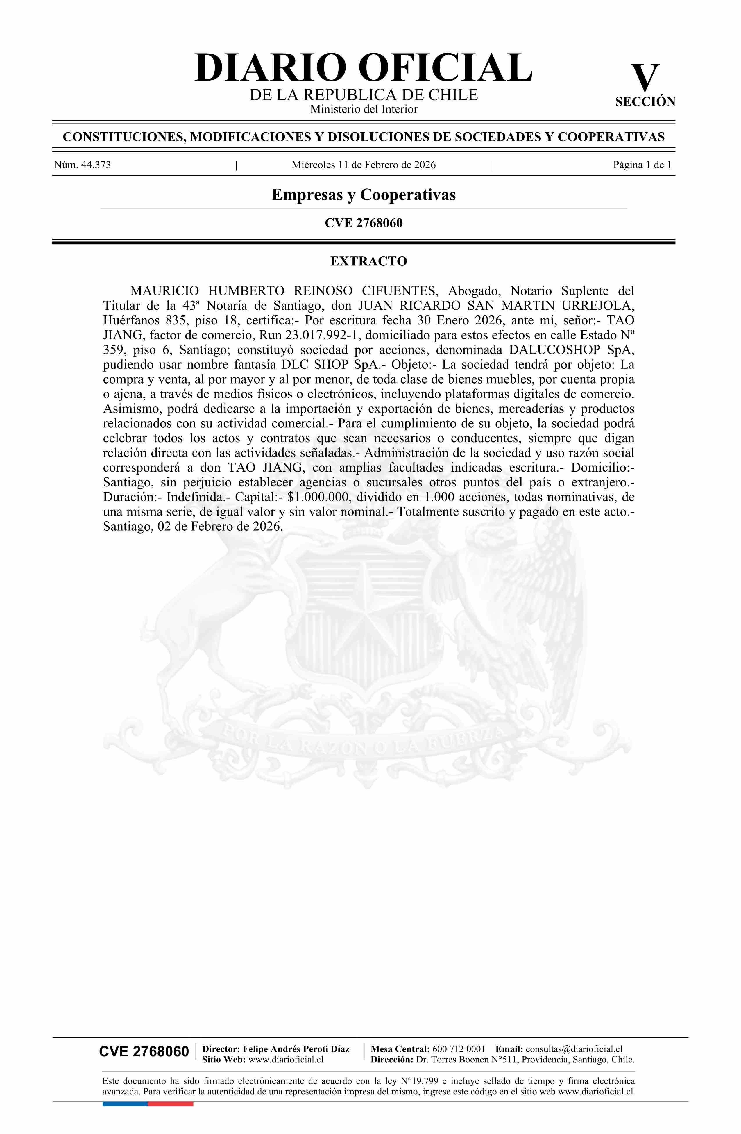 Diario Oficial Edición Electrónica (Diario Oficial de Chile - 5 Empresas Y Cooper)