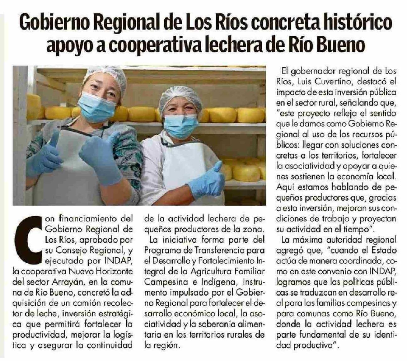 Gobierno Regional de Los Ríos concreta histórico apoyo a cooperativa lechera de Río Bueno