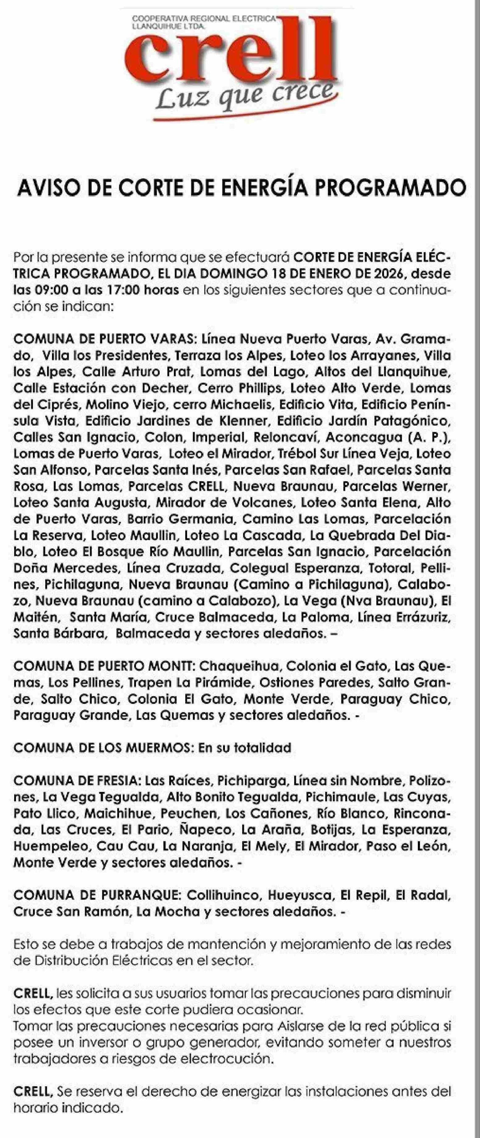 AVISO DE CORTE DE ENERGÍA PROGRAMADO