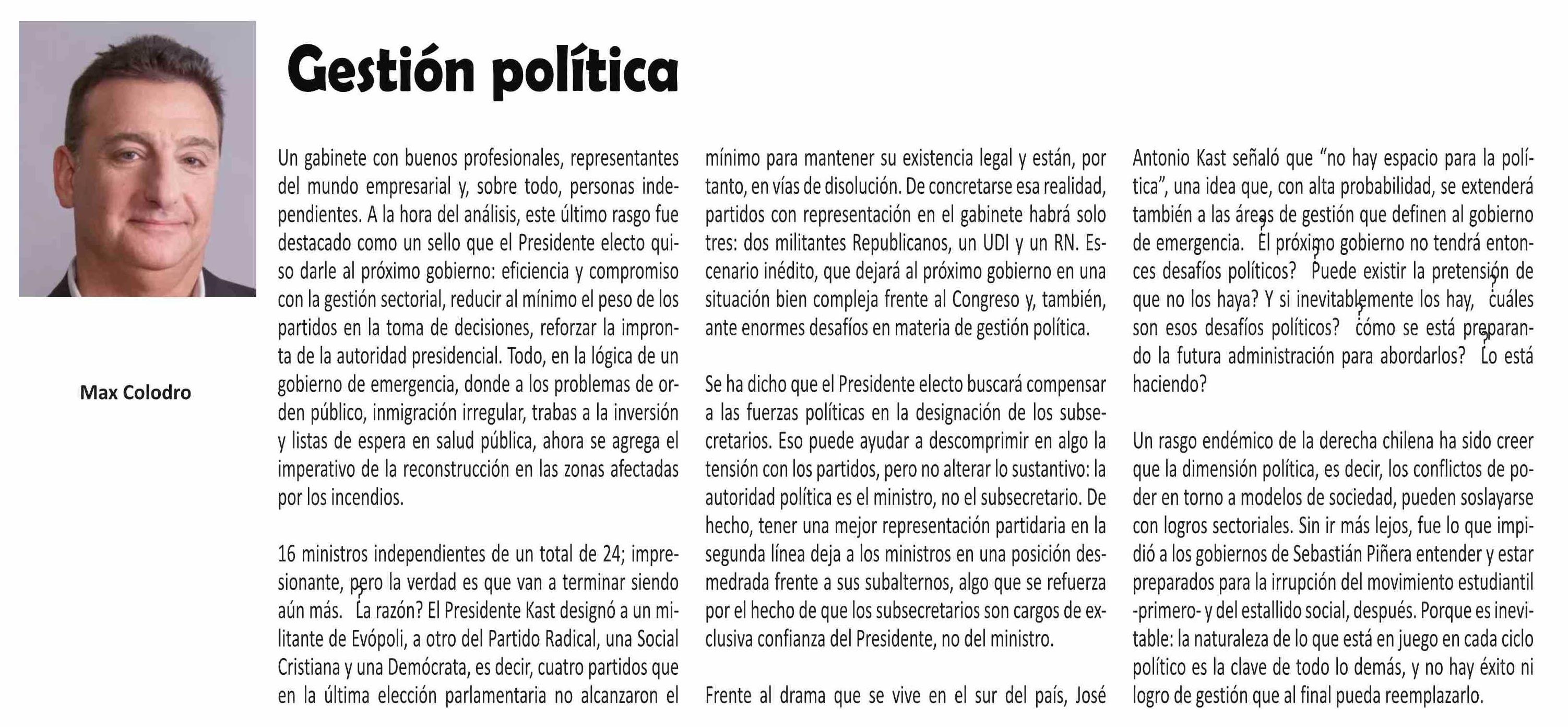 Columnas de Opinión: Gestión política