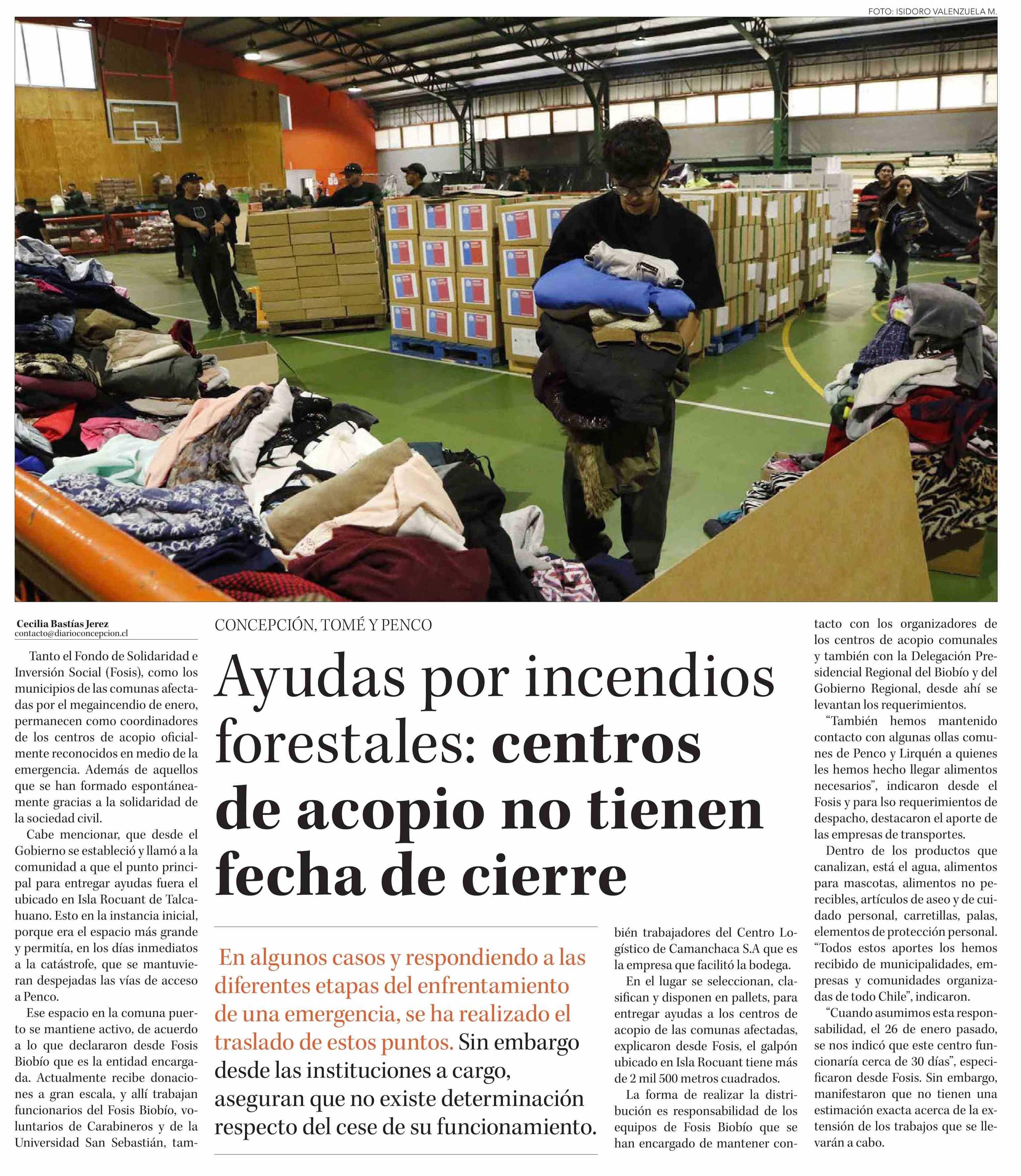 Título: Ayudas por incendios forestales: centros de acopio no tienen fecha de cierre