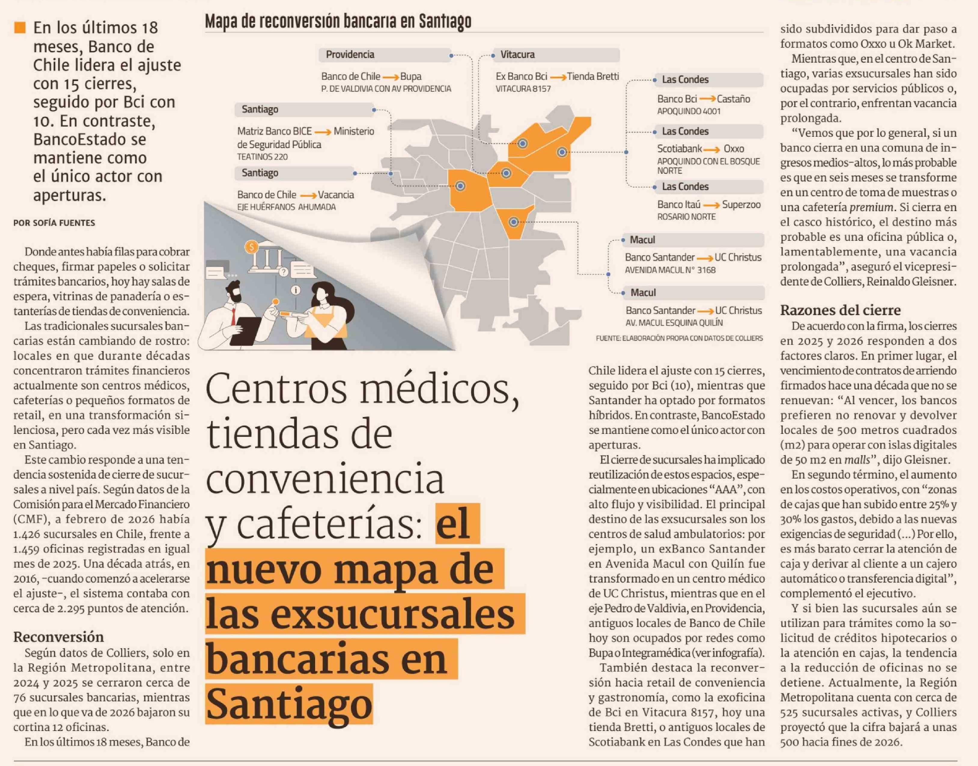 Centros médicos, tiendas de conveniencia y cafeterías: el nuevo mapa de las exsucursales bancarias en Santiago