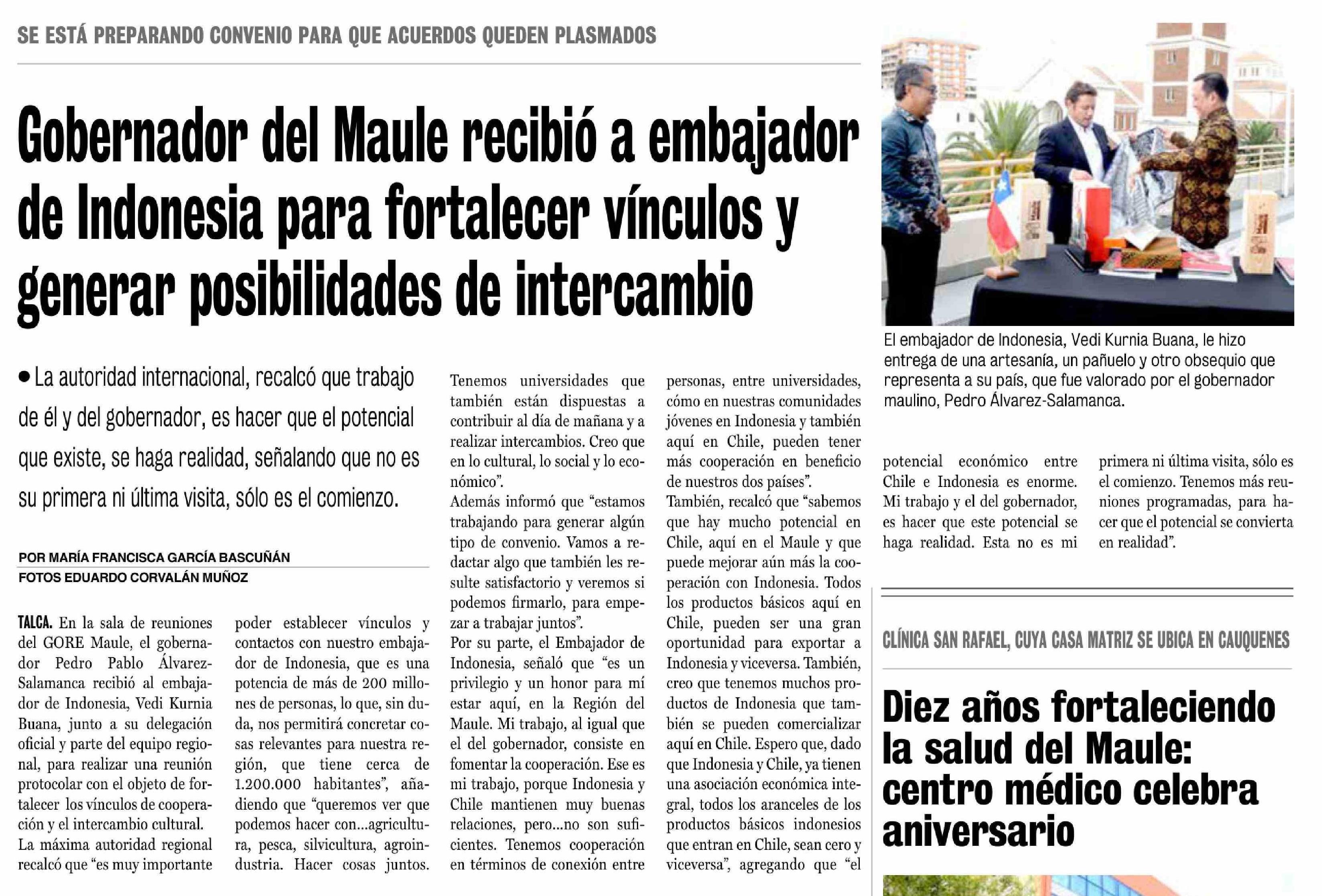Gobernador del Maule recibió a embajador de Indonesia para fortalecer vínculos y generar posibilidades de intercambio