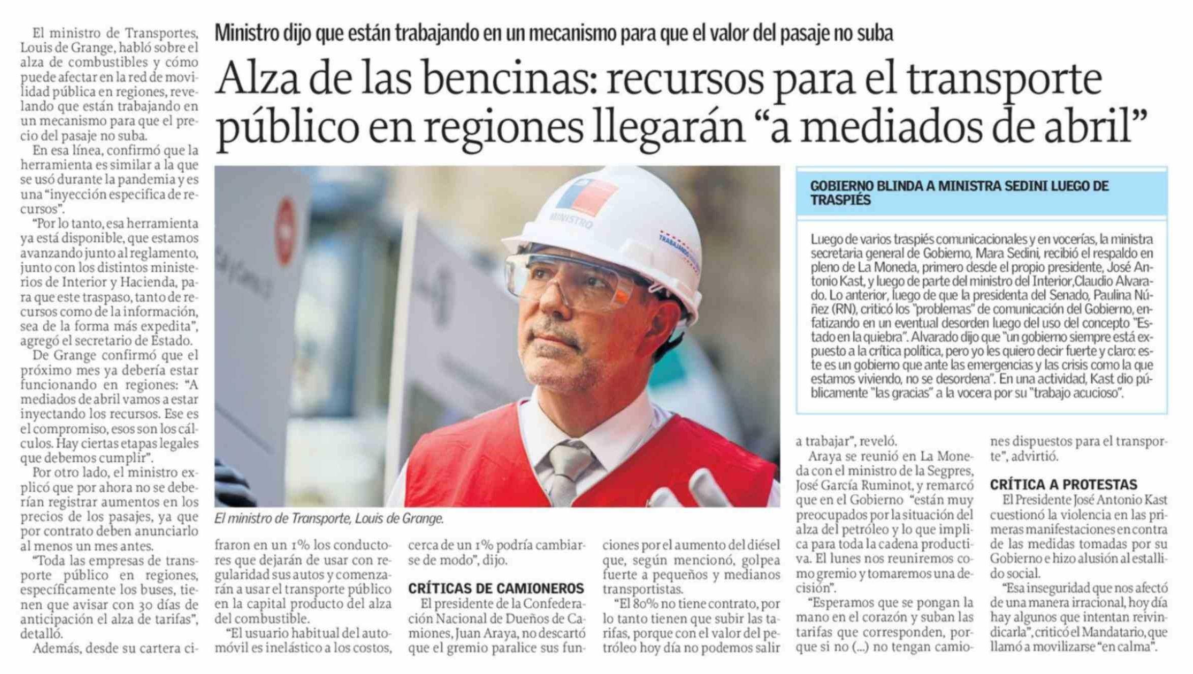 Alza de las bencinas: recursos para el transporte público en regiones llegarán "a mediados de abril"