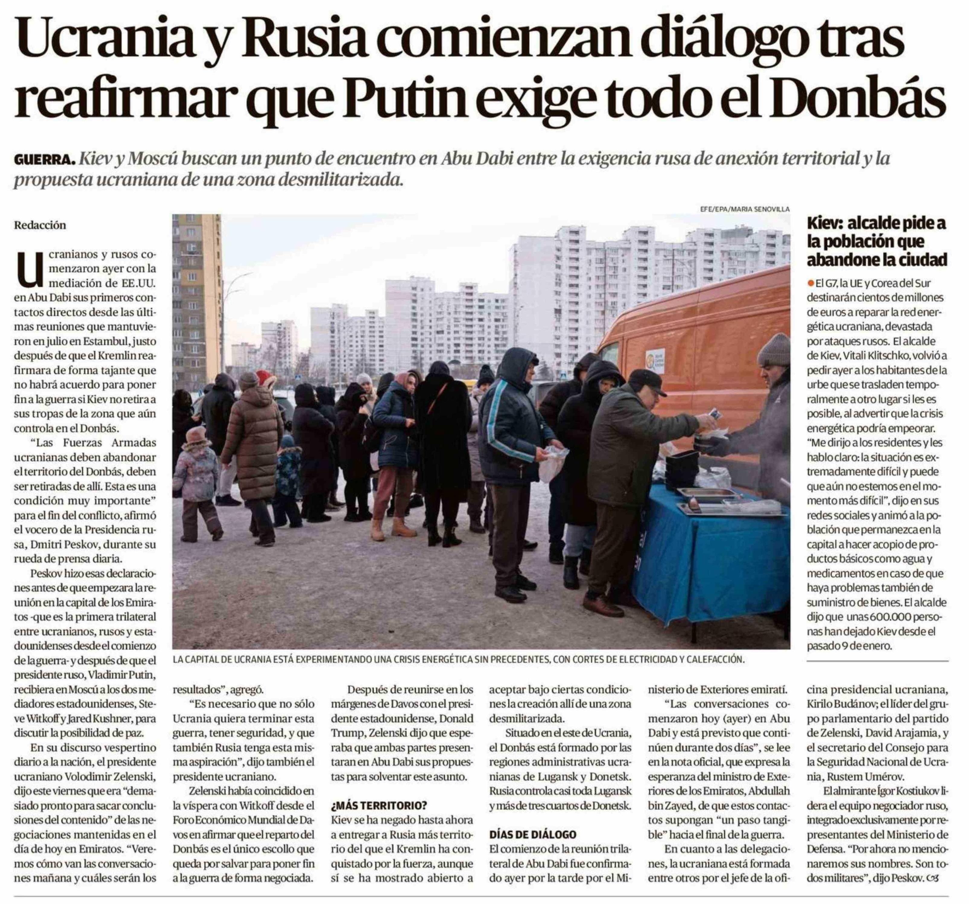 Ucrania y Rusia comienzan diálogo tras reafirmar que Putin exige todo el Donbás