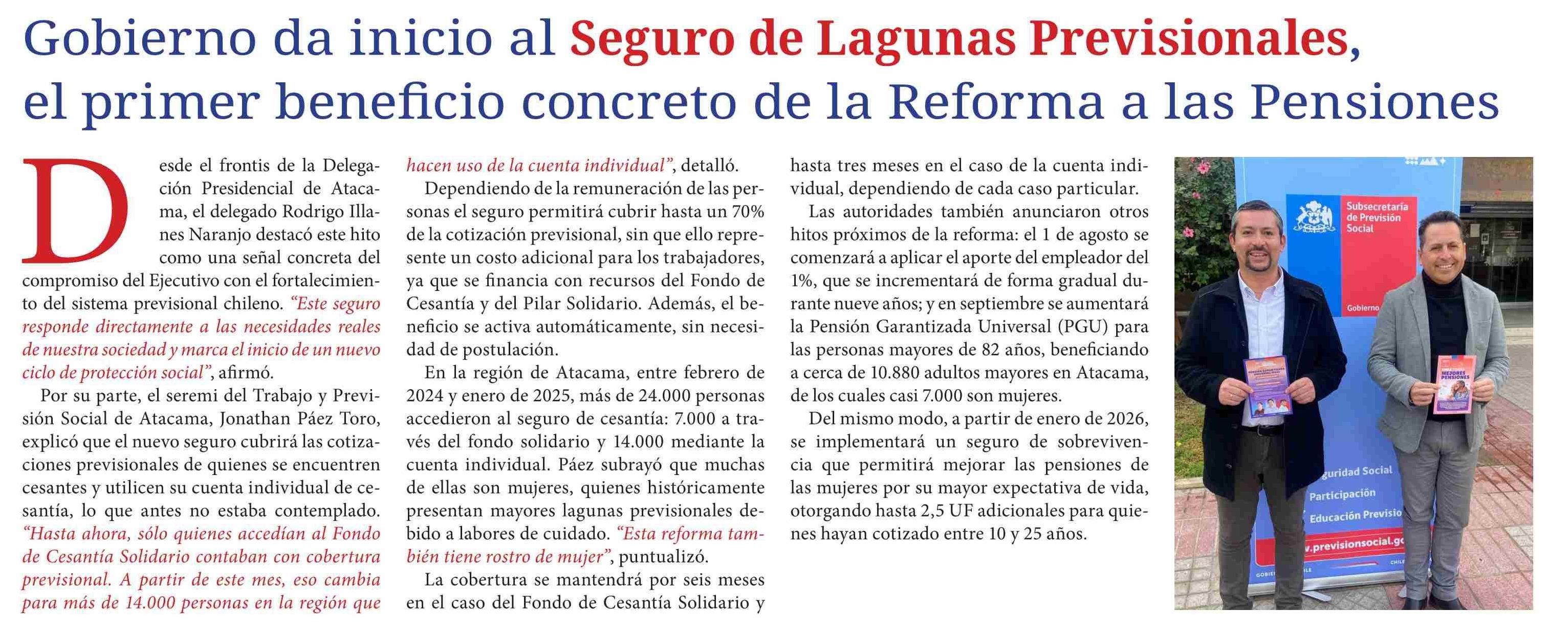 Gobierno da inicio al Seguro de Lagunas Previsionales, el primer beneficio concreto de la Reforma a las Pensiones