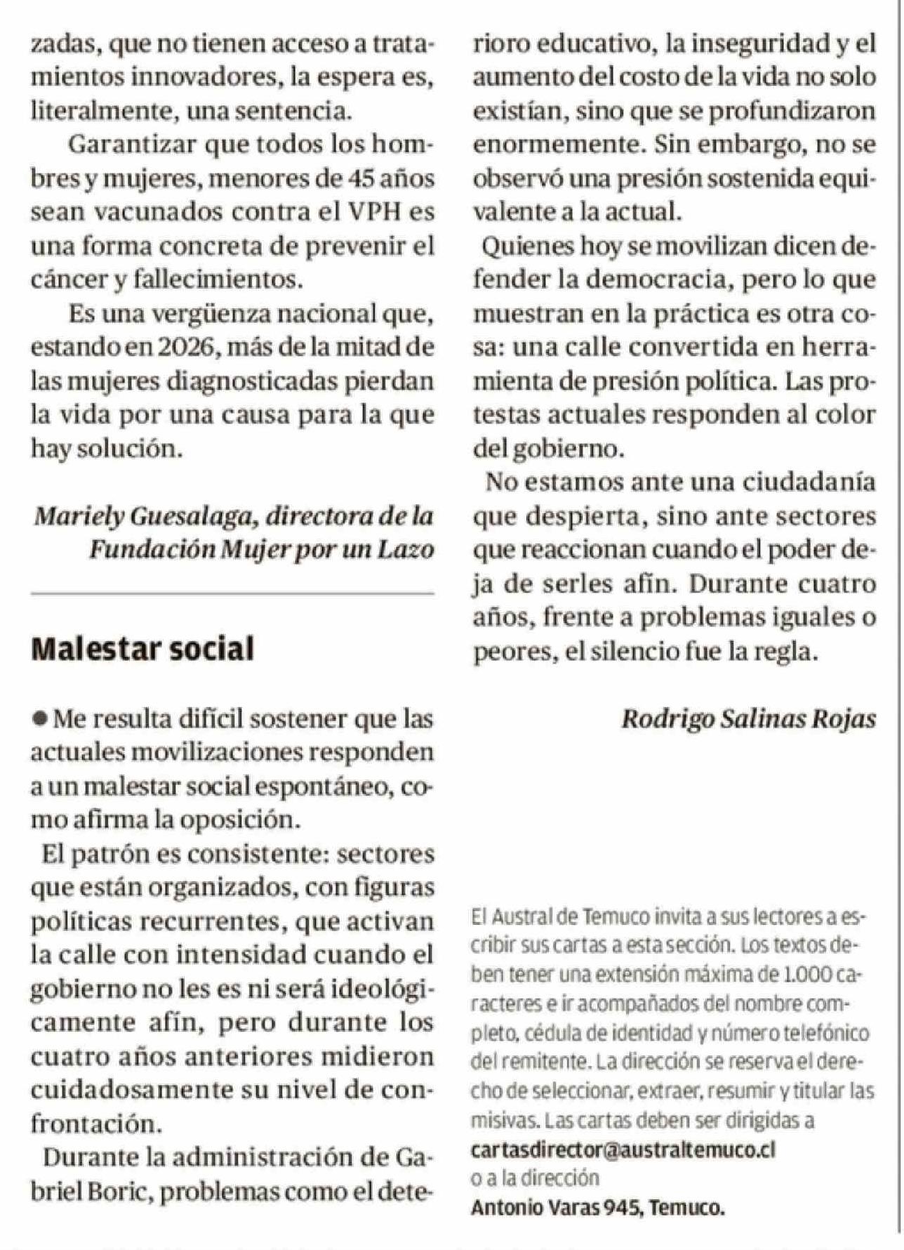 Fuente: El Austral de la Araucanía (El Austral de la Araucanía) Página(s): 9