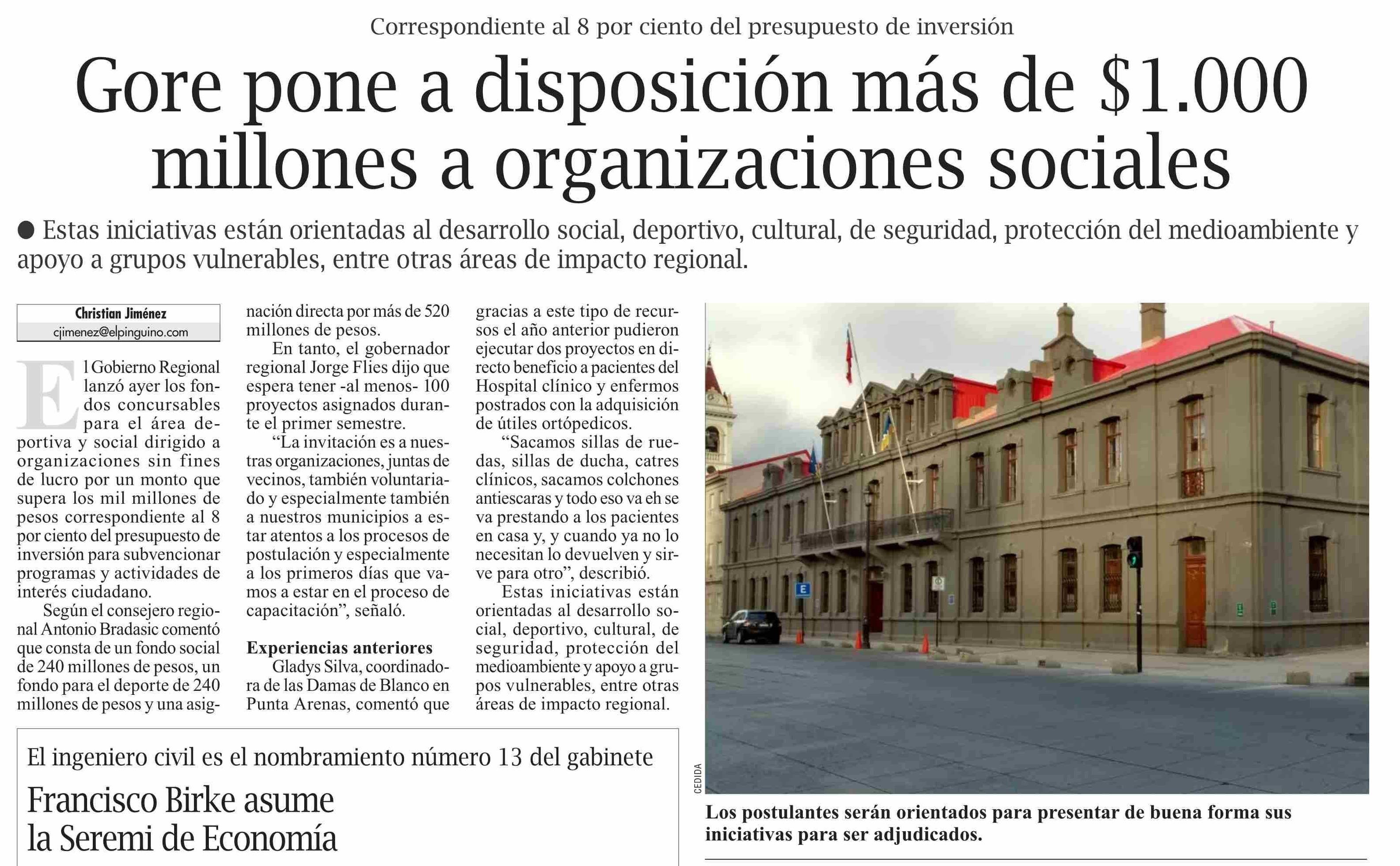 Gore pone a disposición más de $1.000 millones a organizaciones sociales