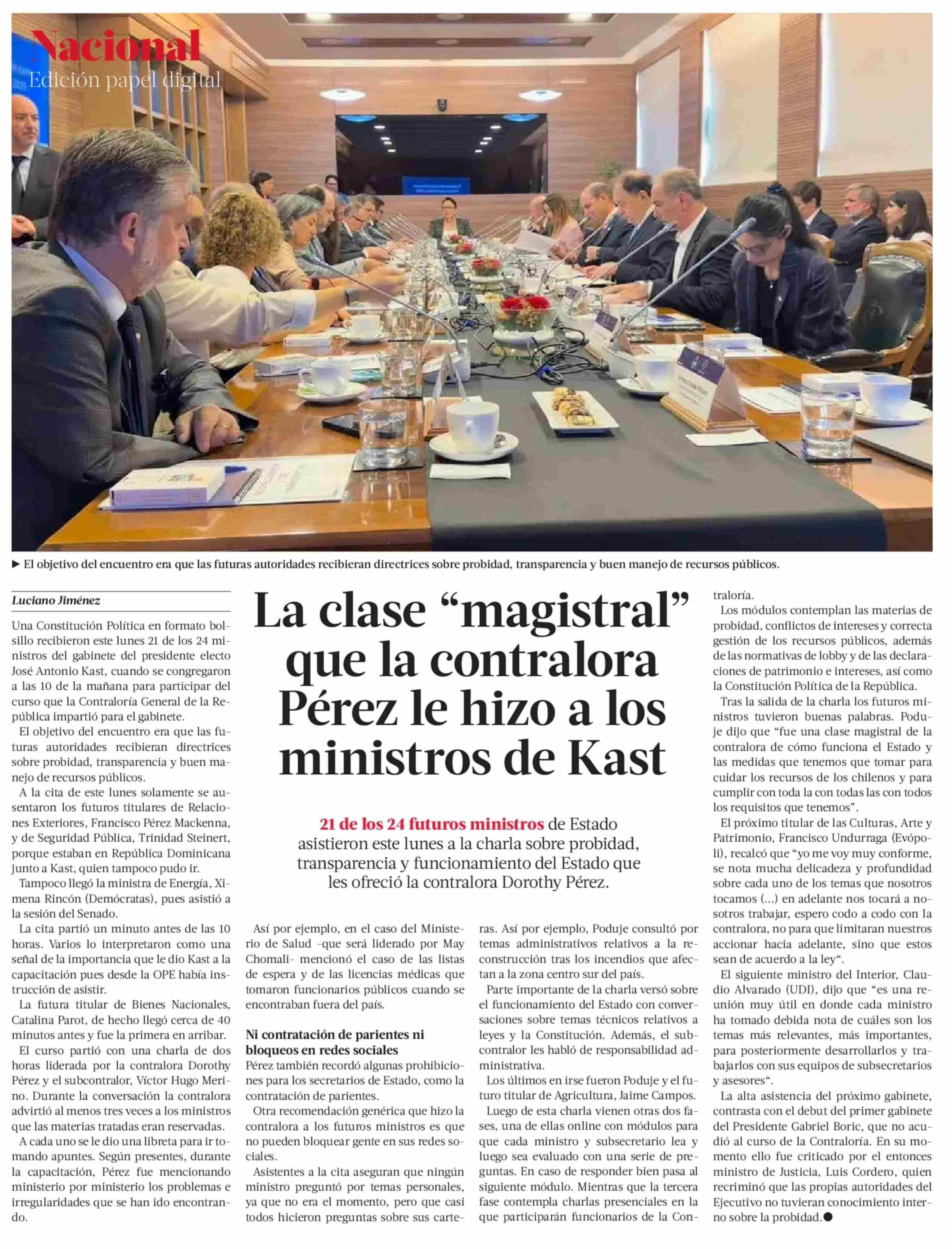 La clase "magistral" que la contralora Pérez le hizo a los ministros de Kast