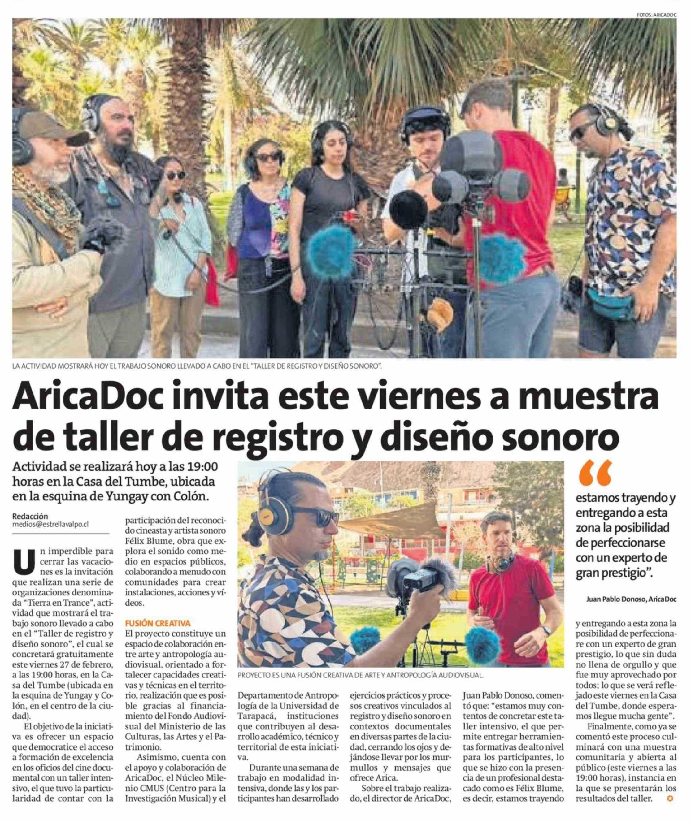 AricaDoc invita este viernes a muestra de taller de registro y diseño sonoro