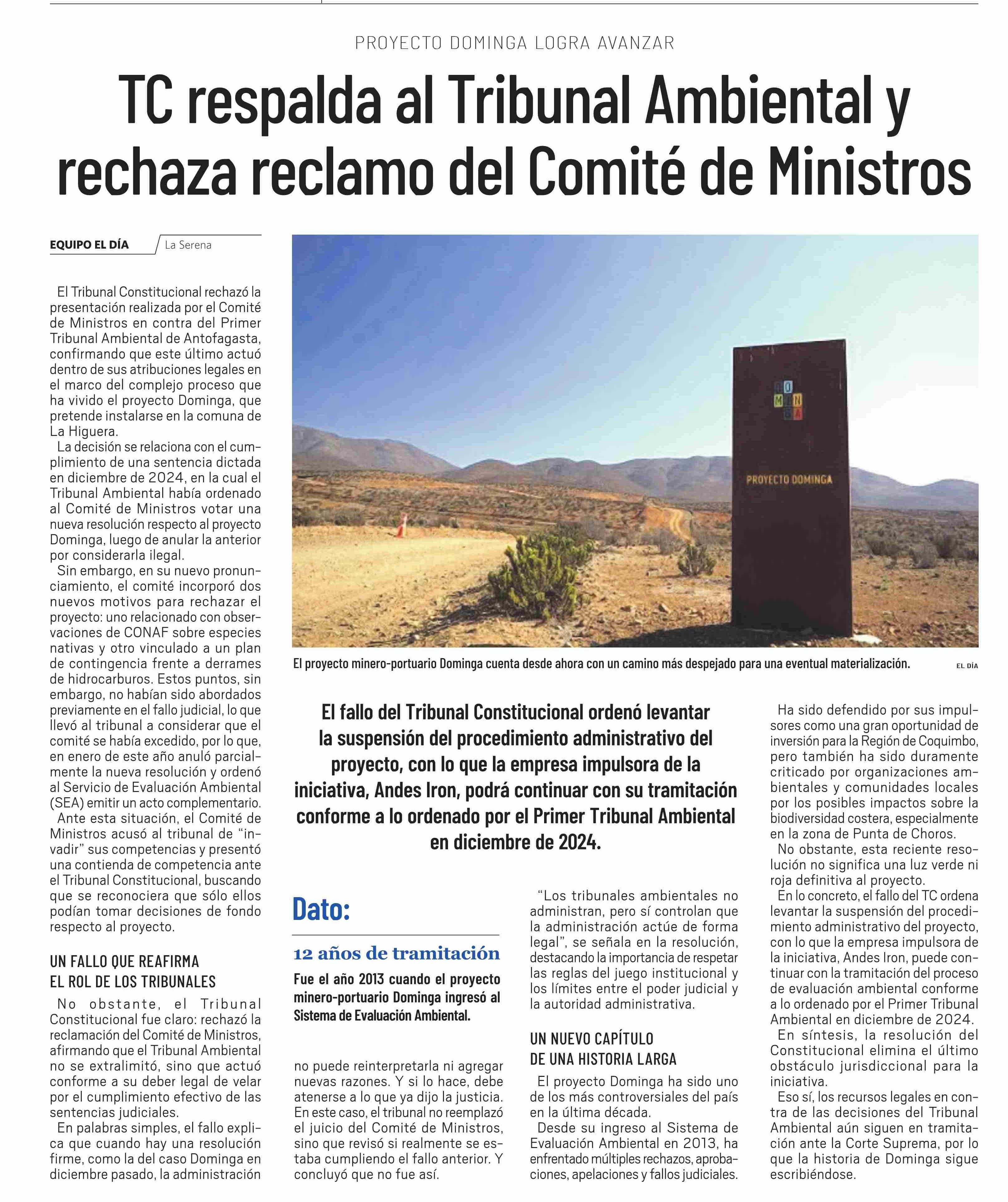 TC respalda al Tribunal Ambiental y rechaza reclamo del Comité de Ministros