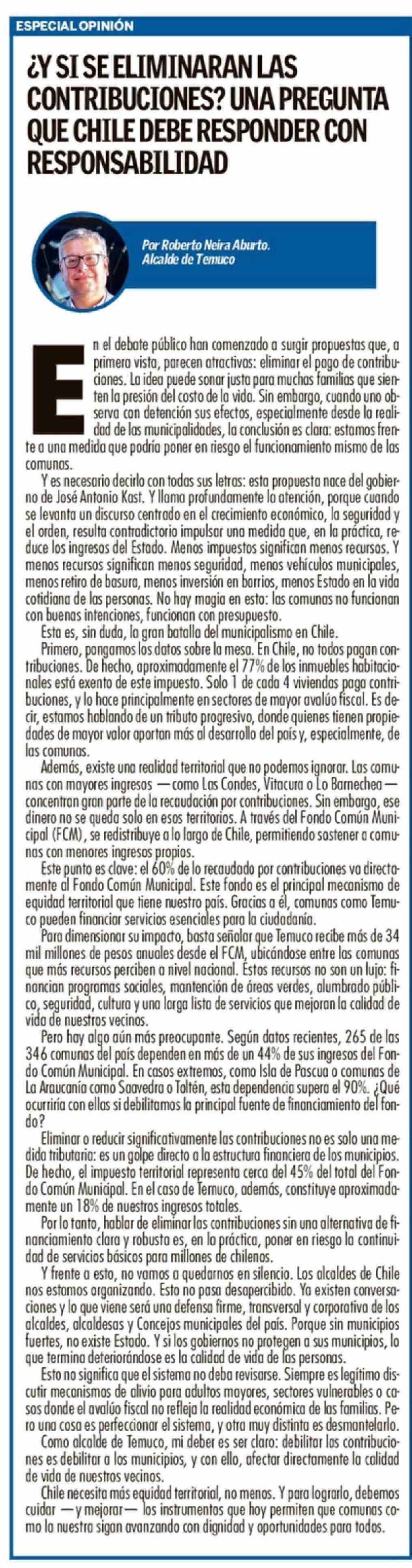 Columnas de Opinión: ¿Y SI SE ELIMINARAN LAS CONTRIBUCIONES? UNA PREGUNTA QUE CHILE DEBE RESPONDER CON RESPONSABILIDAD