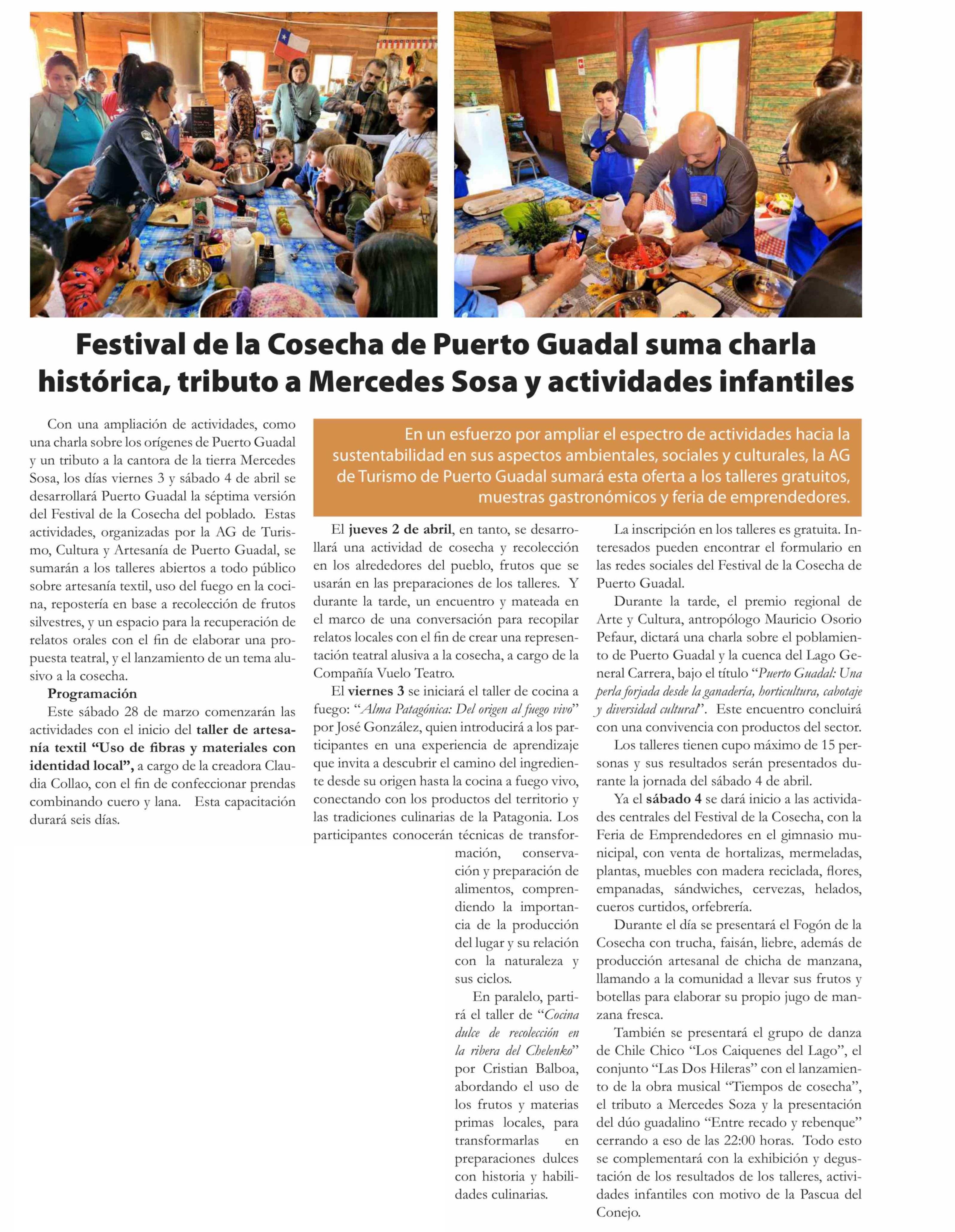 Festival de la Cosecha de Puerto Guadal suma charla histórica, tributo a Mercedes Sosa y actividades infantiles