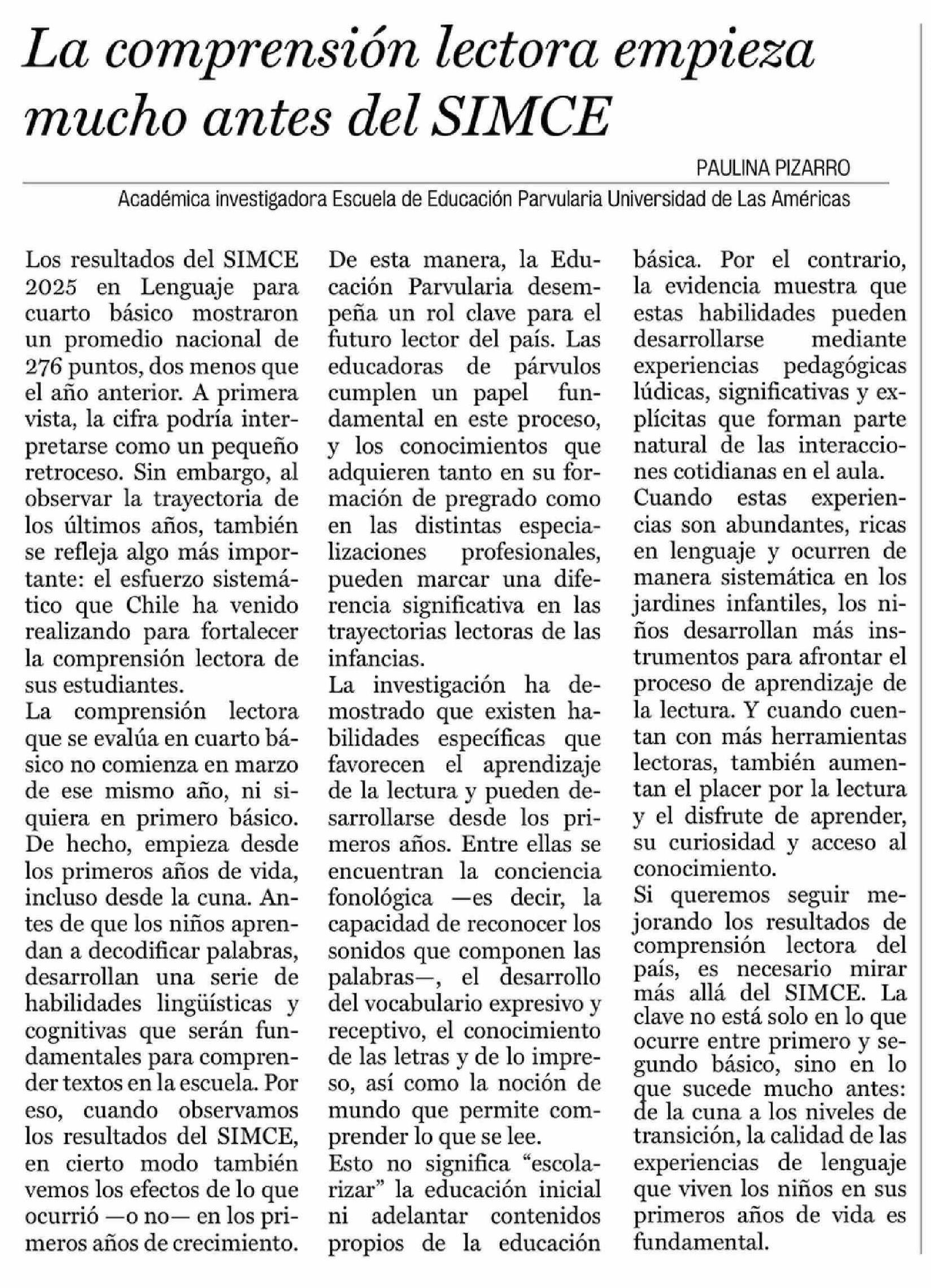 Cartas: La comprensión lectora empieza mucho antes del SIMCE
